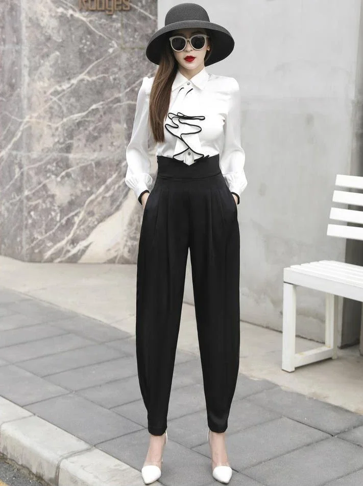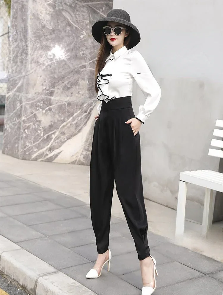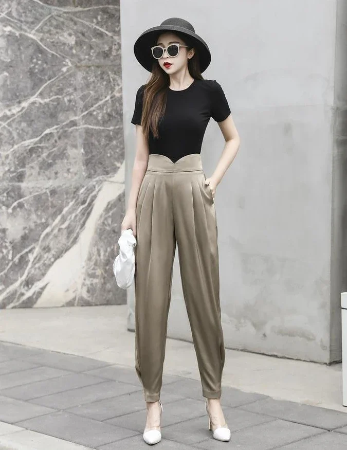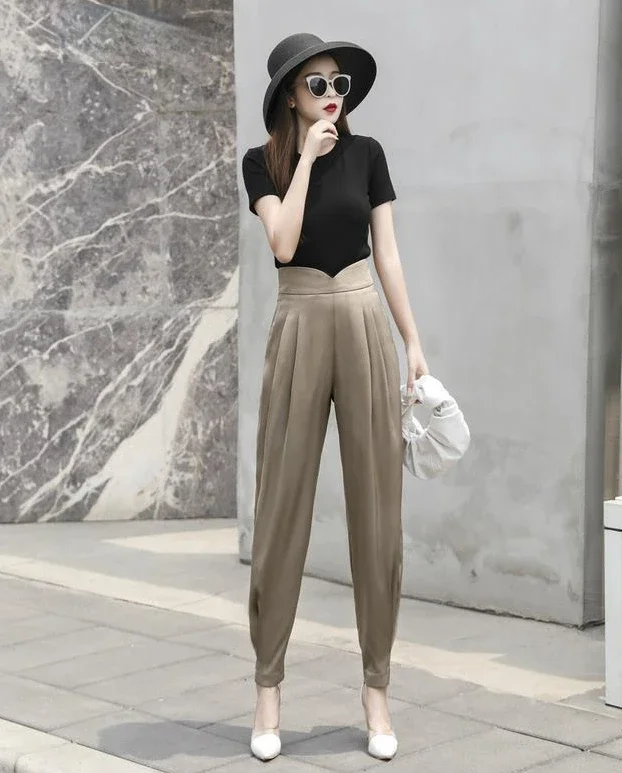Trousers for Woman Pencil Solid Clothing Black Women's Pants High Waist Y2k Streetwear Autumn Cotton Elastic G Classic Quality