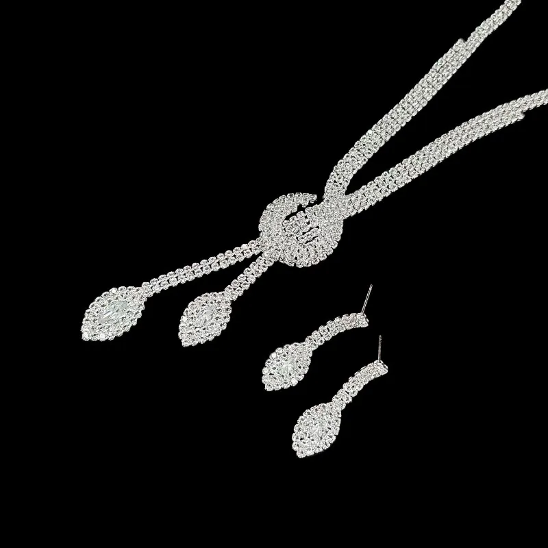Two-piece set of women's earrings and necklace, fashionable, luxurious, and sparkling jewelry, perfect for holiday gifts