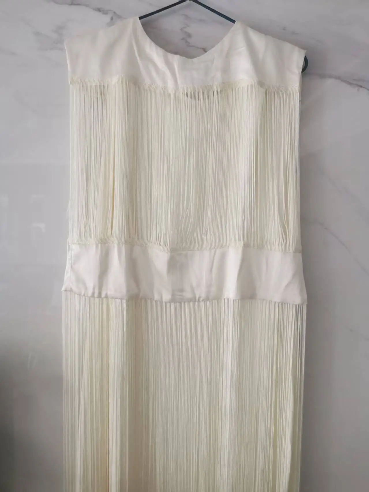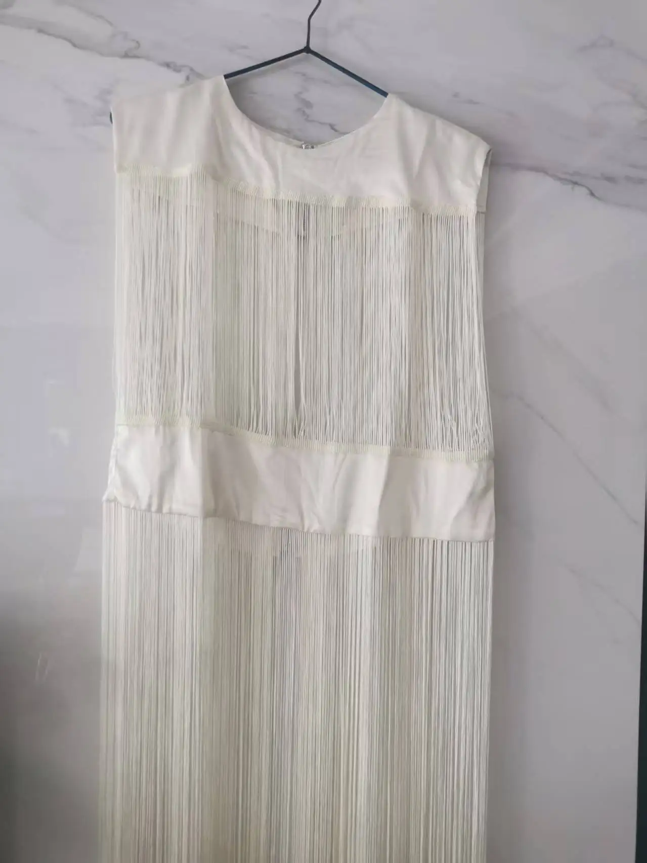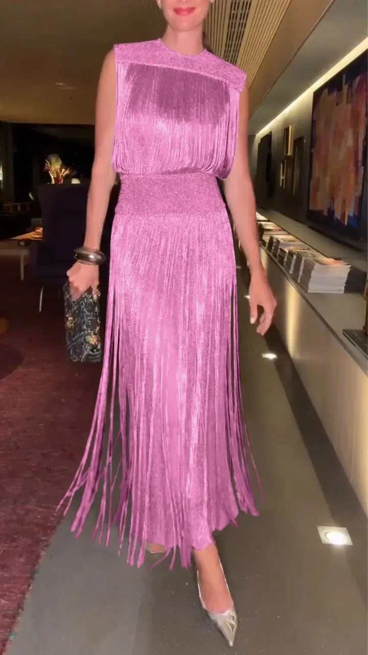 Two Piece Sets Fashion Sequin Fringed Dress for Women Streetwear Glitter Sleeveless Party Gown Elegant O-neck Long Dresses