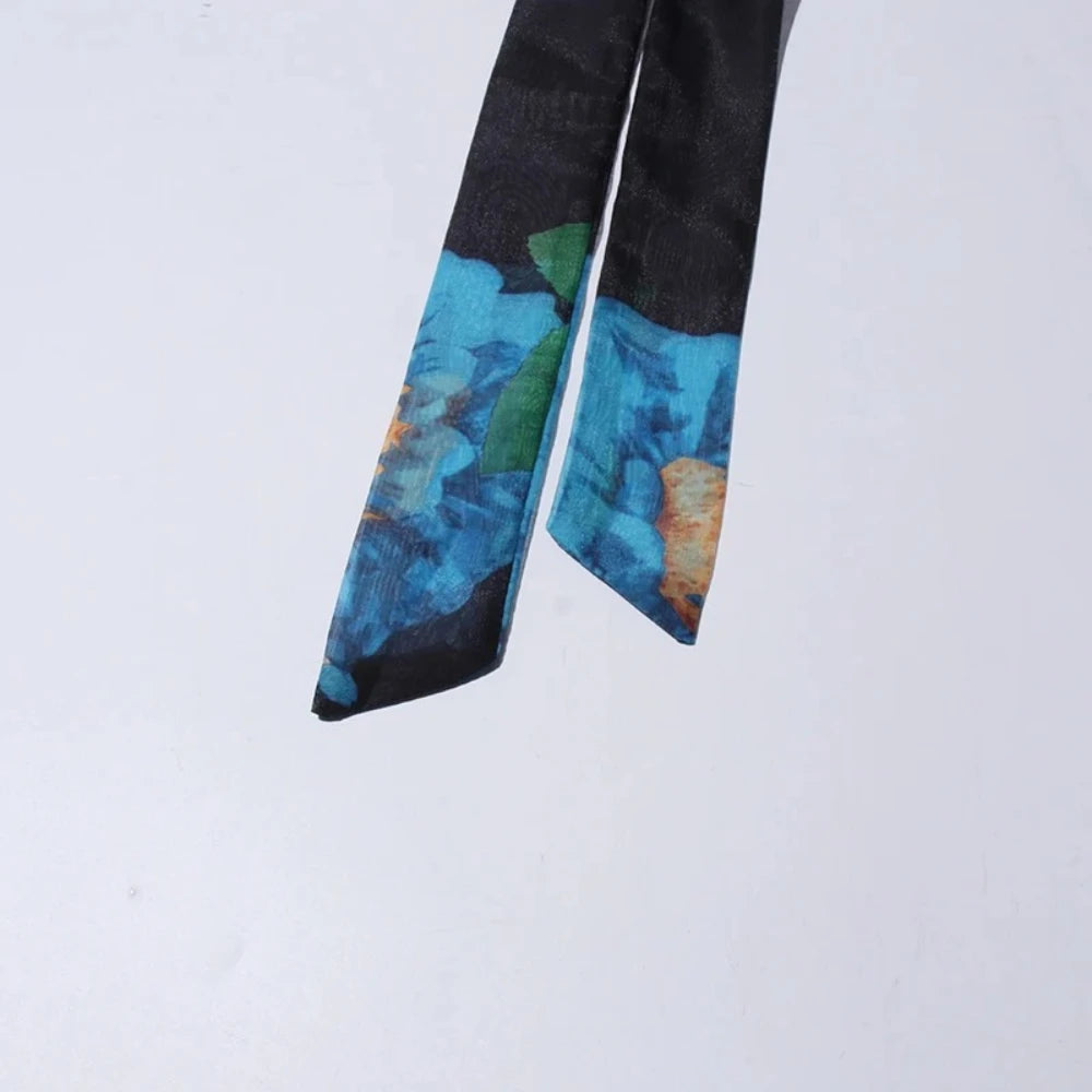 TWOTWINSTYLE Hit Color Spliced Printing Midi Dresses for Women Round Neck Short Sleeves Patchwork Lace Up Elegant Dress Female