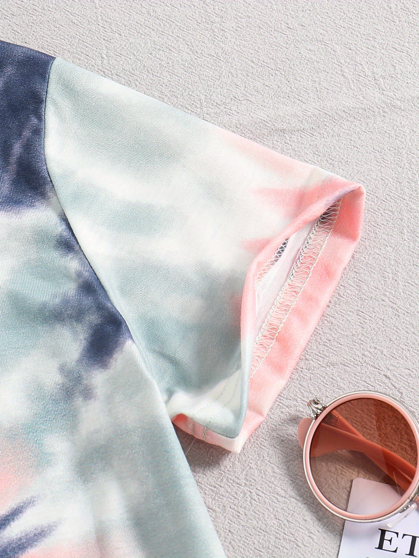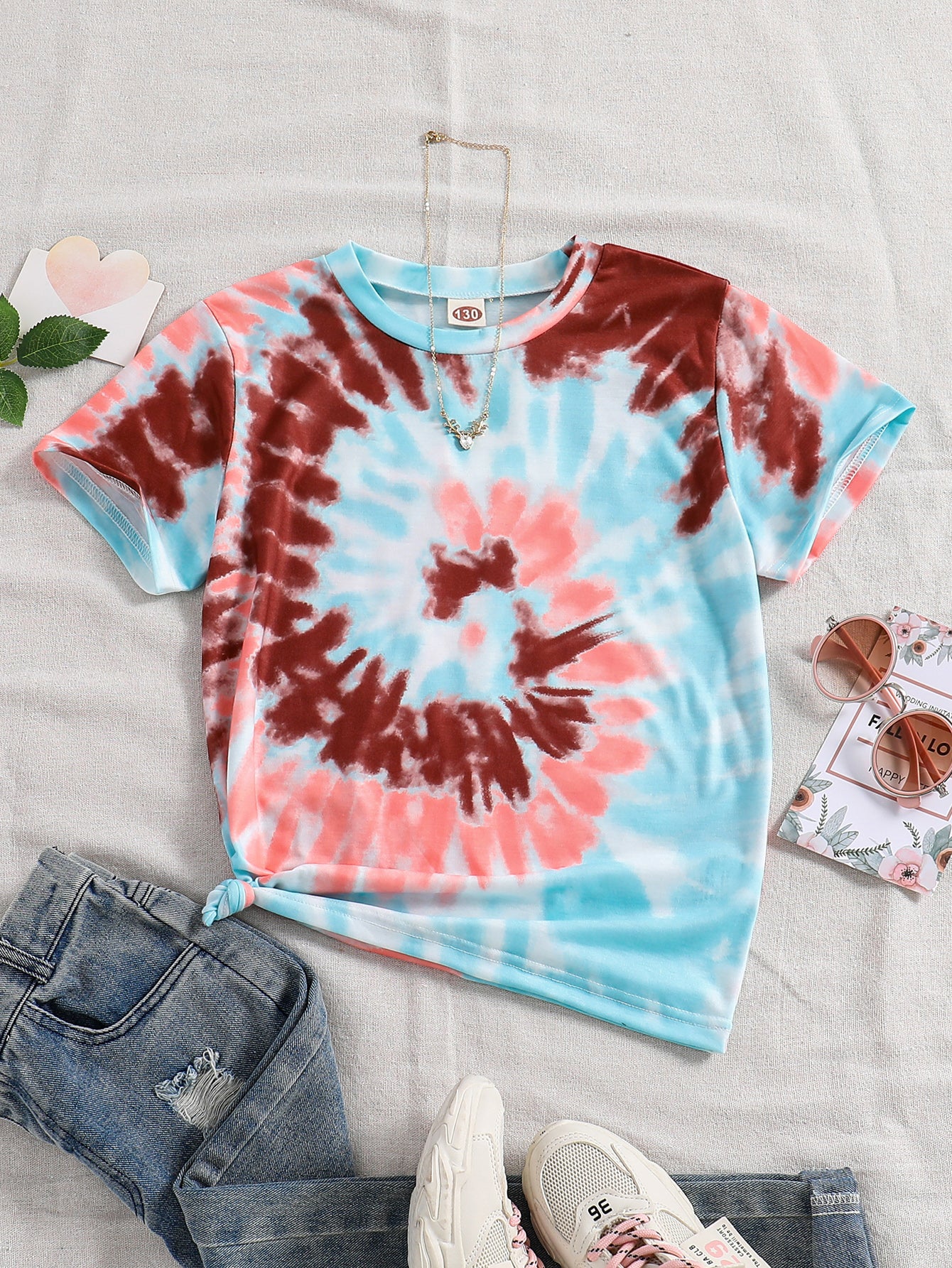 Vibrant Girls' Tie-Dye Graphic Crew Neck T-Shirt - Soft, Lightweight, and Comfortable Fit for Kids - Perfect Summer Tops Clothing for Casual Wear