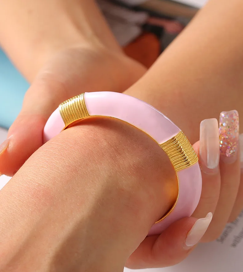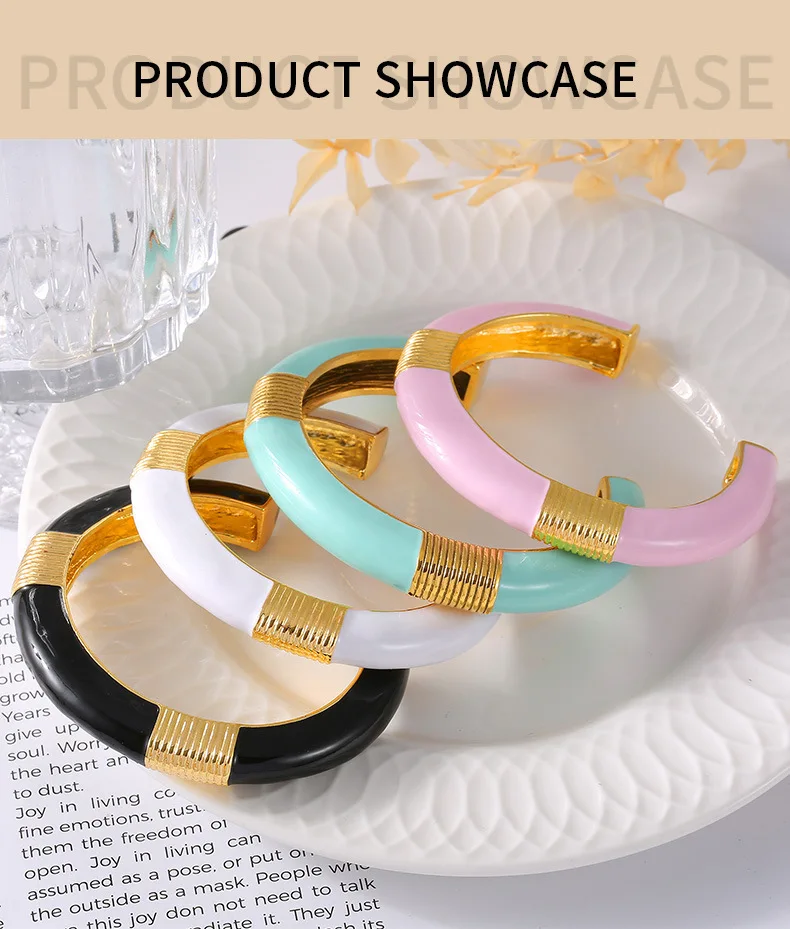 Vintage Enamel Bracelet Bangles For Women 18K Gold Plated Waterproof Women's Hand Bracelets Cuff Bangle Fashion Ladies Jewelry