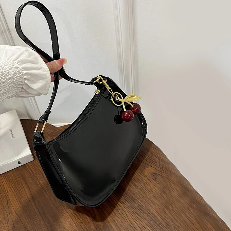 Vintage Retro Shoulder Bag for Women PU Leather Underarm Crossbody Ladies Casual Handbag Purse with Cherry Pendant