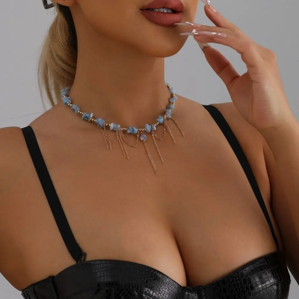 Water Droplet Necklace Tassel Necklace INS Style Collarbone Chain Natural Stone Pendant Necklace Women's Necklace Jewelry