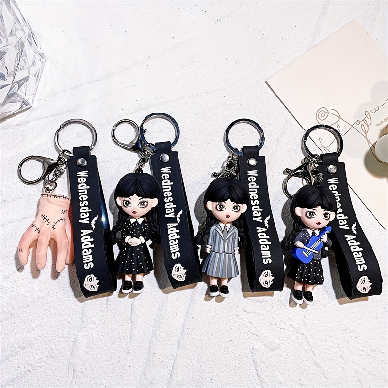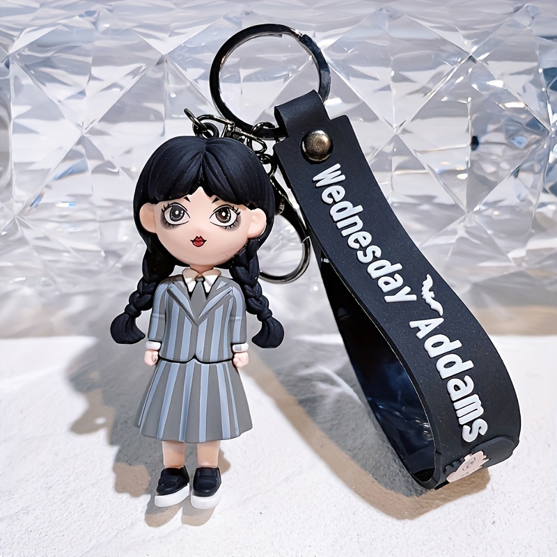 Wednesday Addams-Inspired Keychain, Doll Figure Accessory, Black With Polka Dots, Durable PVC Material, Perfect For Handbags And Party