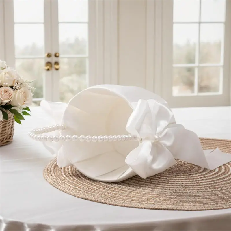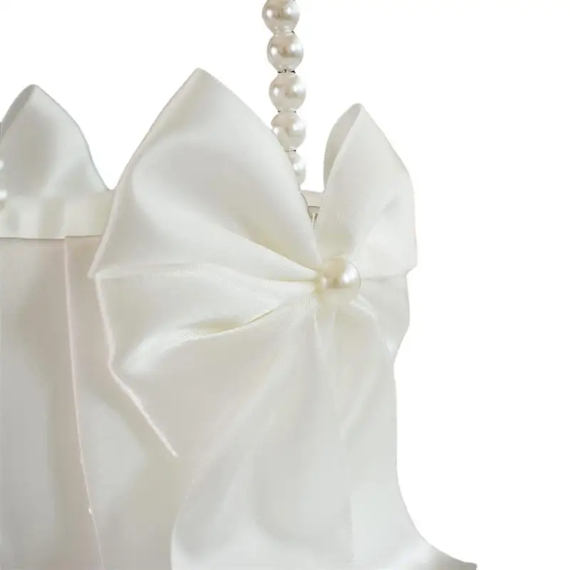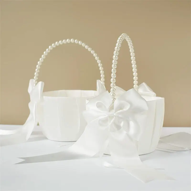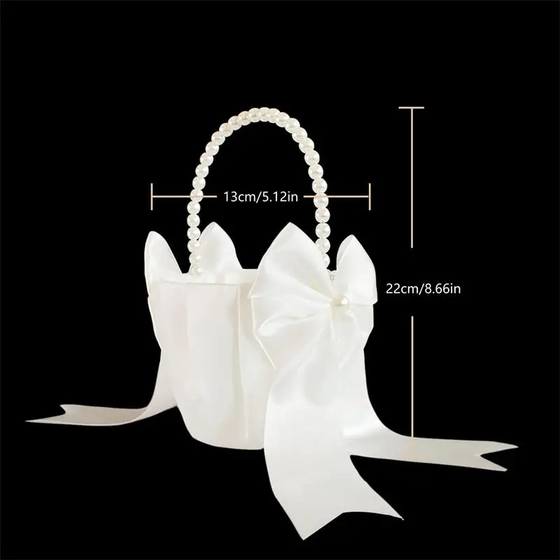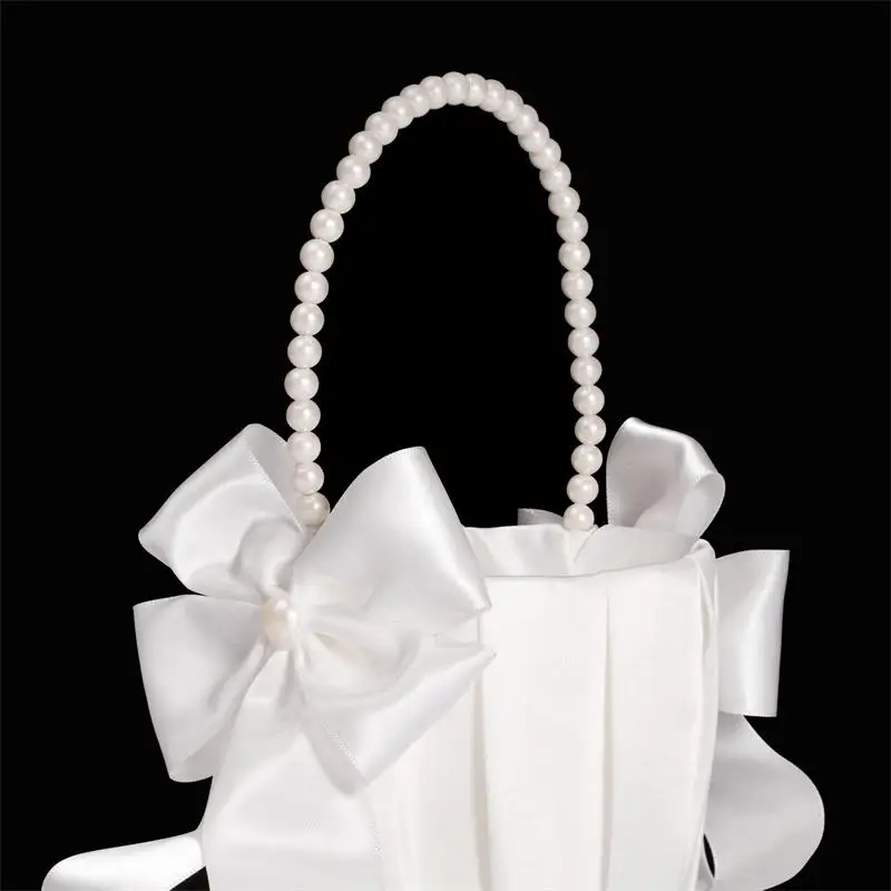 White Girls Flower Basket Silk Wedding Basket Flower Bride Girls Kids Hand Held Wedding Party Wedding Bridal Flower Basket