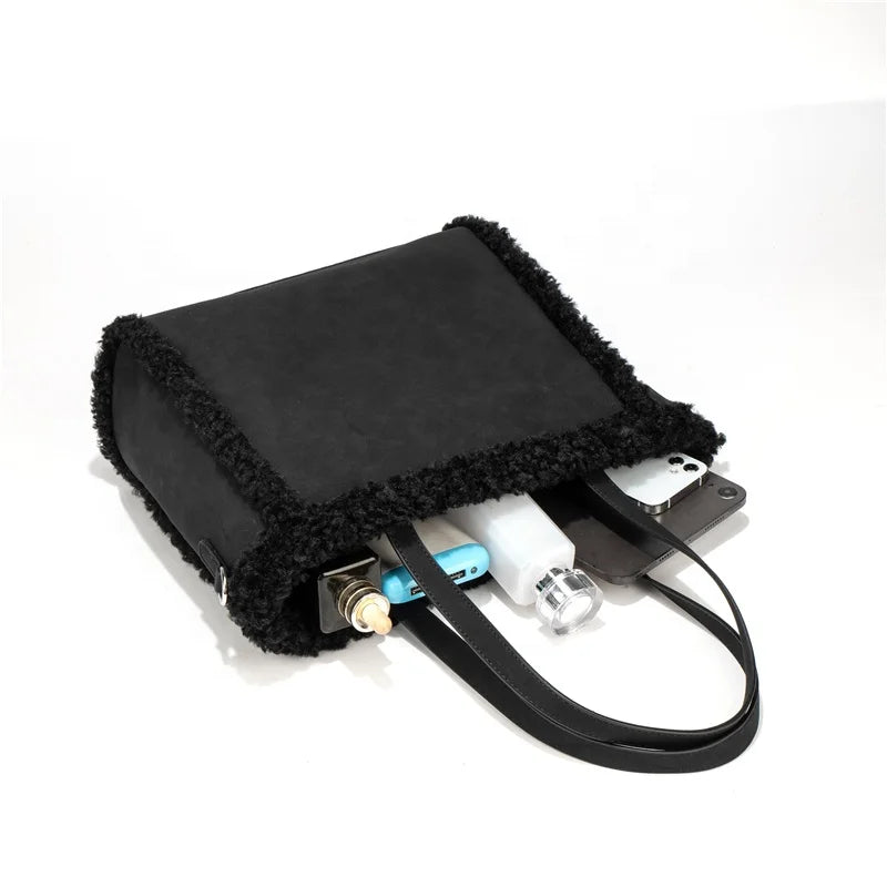 Wholesale Custom logo Winter Bag 2025 Handbags Women Tote Bag Leather Ladies Hand Bags with Plush
