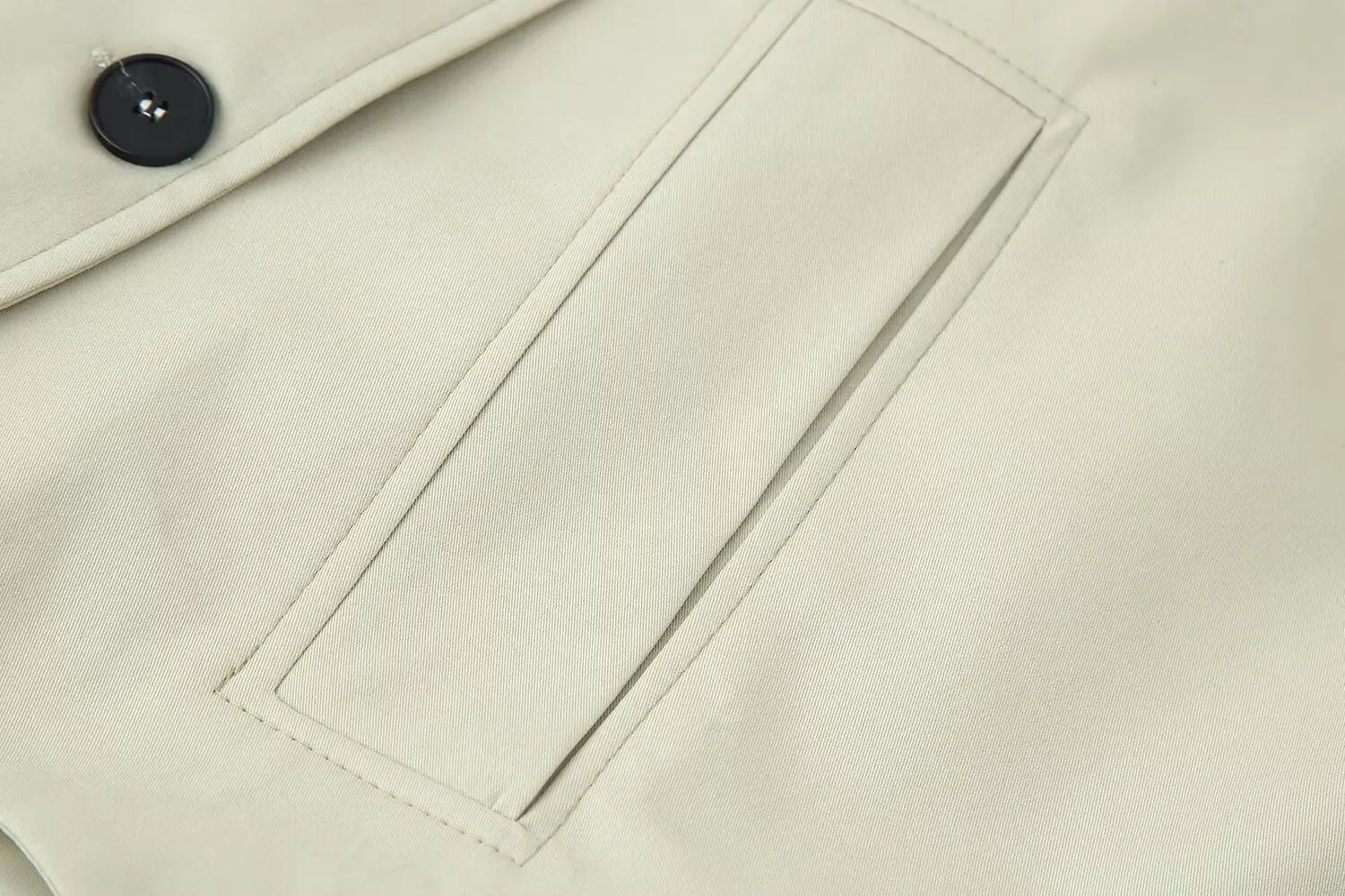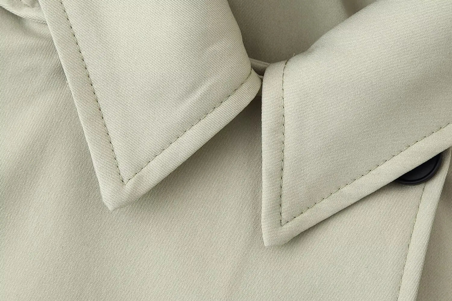 Windbreaker Outerwears Women Hood Cropped Jacket Trench Coat 2025 Autumn Long Sleeve Turn-Down Collar Casual Buttons Coats Cloth