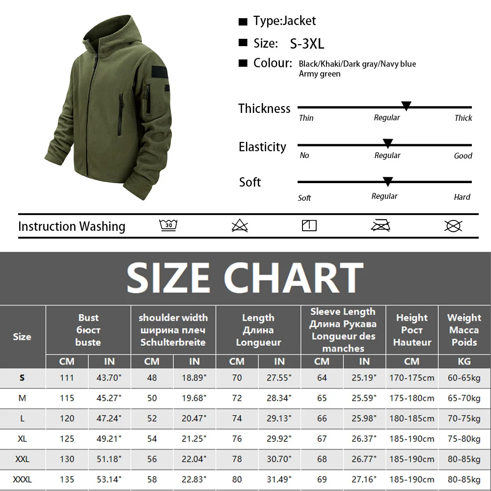 Winter Hunting Men’s Fleece Jacket Warm Coats Polar Outdoor Hoodie Jacket Multi-Pocket Casual Full Zip Sport Hiking Coat S-XXXL