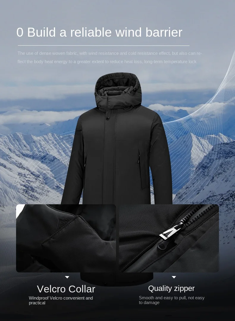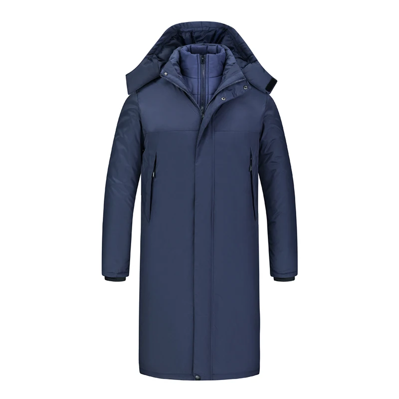 Winter Jacket 3 1-in -1 Removable 2-piece Set Mens Retro Long Warm Padded Jacket Snow Waterproof Thick Hooded Windbreaker Parkas