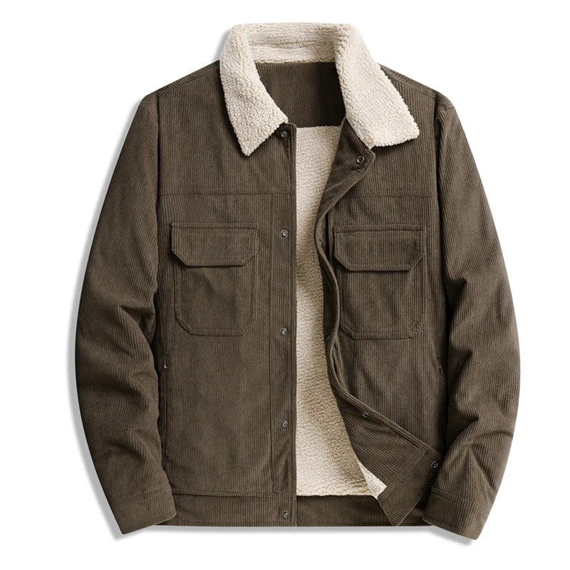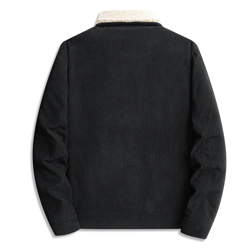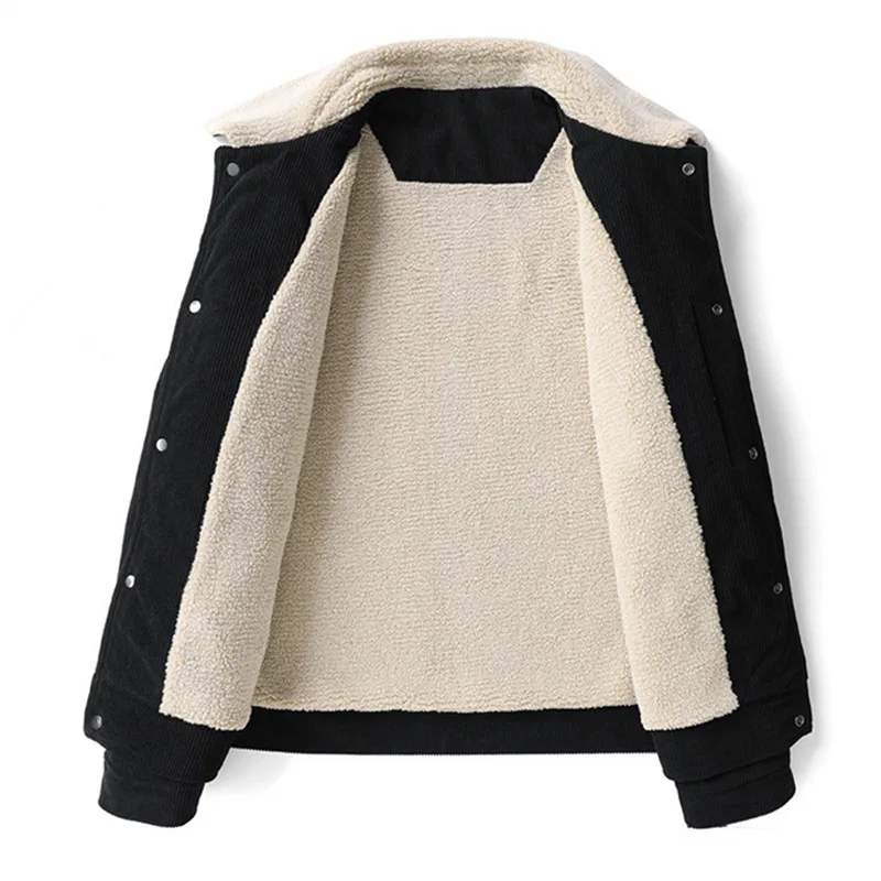 Winter Jackets Men Casual Fleece Warm Turn Down Collar Corduroy Coat Fashion Solid Color Outerwear Coats Daily Mens Clothing
