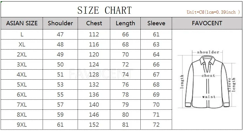 Note:  We sell ASIAN SIZE is about 2-3 size SMALLER than US,UK,AU,EU size.Please choose the size according to our size form.All the dimensions we have personally measured and reality try. When you place the order please live the message with your Shoulder(CM) and Chest(CM) .We will help you to confirm the size.Think you for buying !