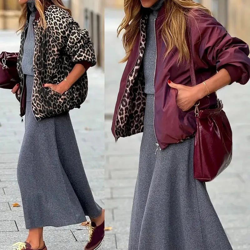 Winter New Streetwear Thick Cotton Coat 2025 Lady Fashion O-neck Long Sleeved Outerwear Leopard Print Double-sided Zipper Jacket