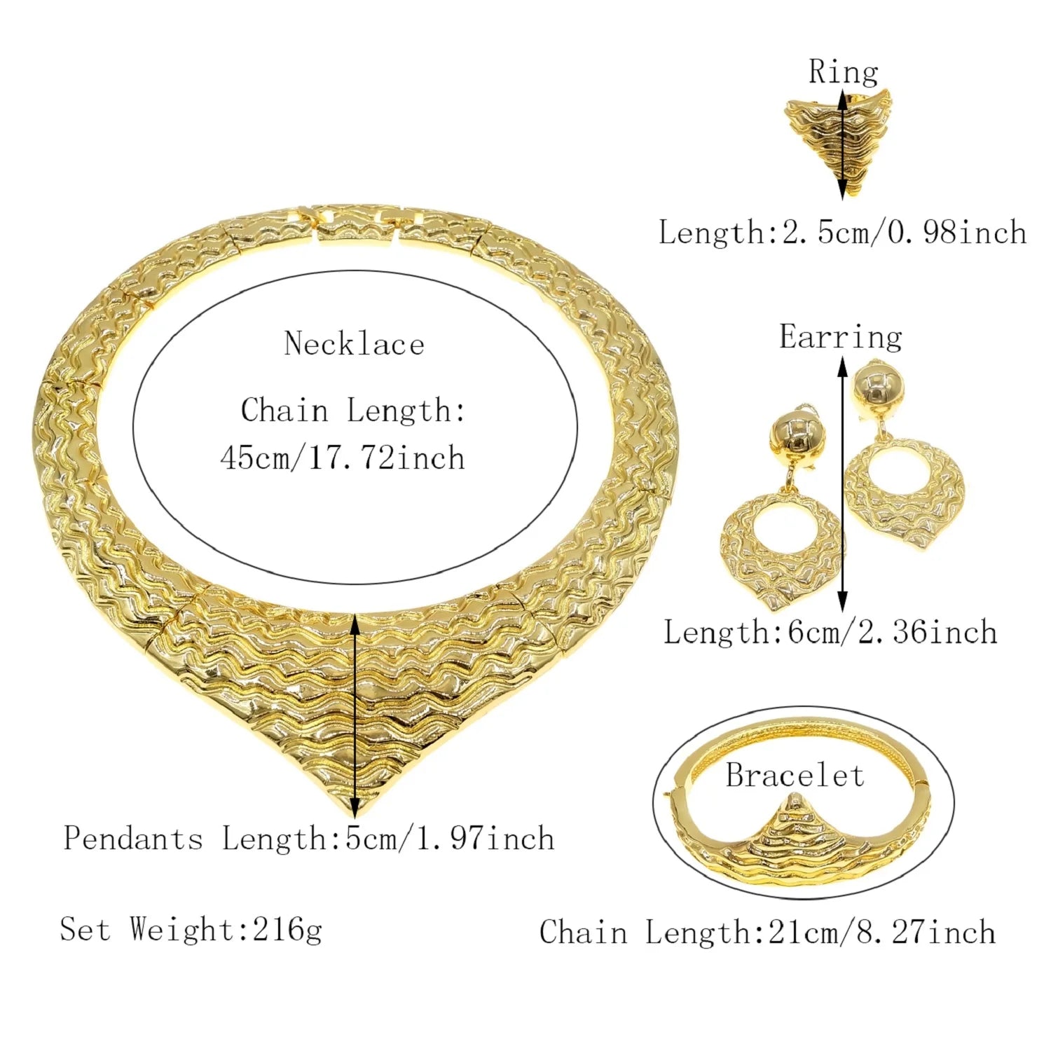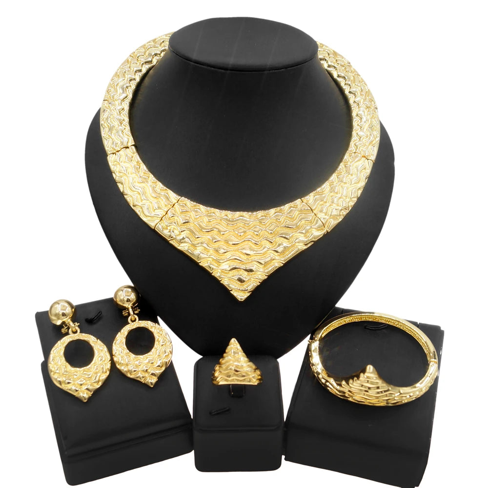 Woman Jewelry Set Italy Dubai Gold Plated Round Necklace Simple Style Earrings Bracelet Women Gift Bijoux