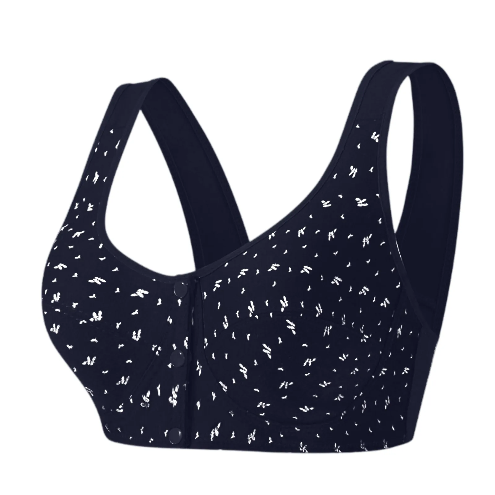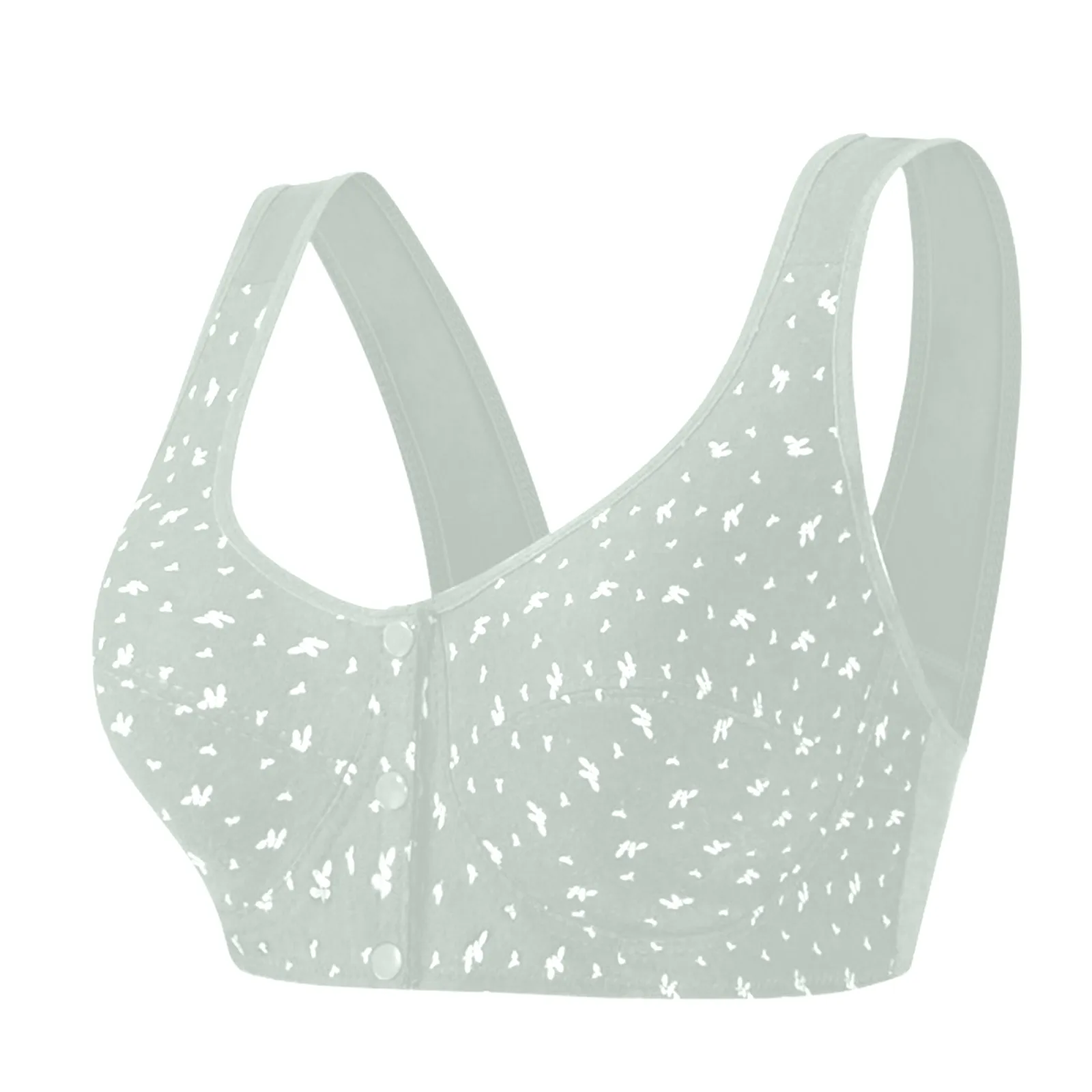 Women Fashion Casual Bra Small Flower Pattern Decor Vest Style Front Buckle Lingerie Lady Elegant Comfortable Daily Underwear