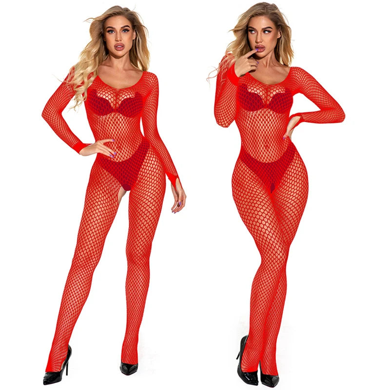 Women Hollow Out Underwear Open Crotch Catsuit High Elastic Fishnet Tights Erotic Lingerie Ladies Bodystockings Teddies