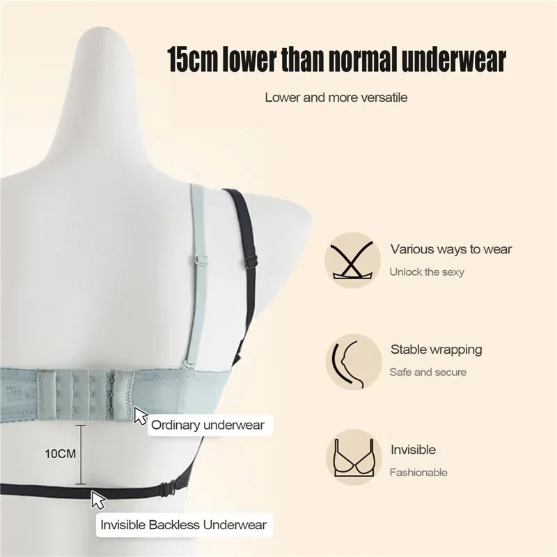 Women Invisible Bra Deep U Plunge Bras Backless Top for Dresses Sexy Lingerie with Transparent Strap Push Up Strapless Underwear