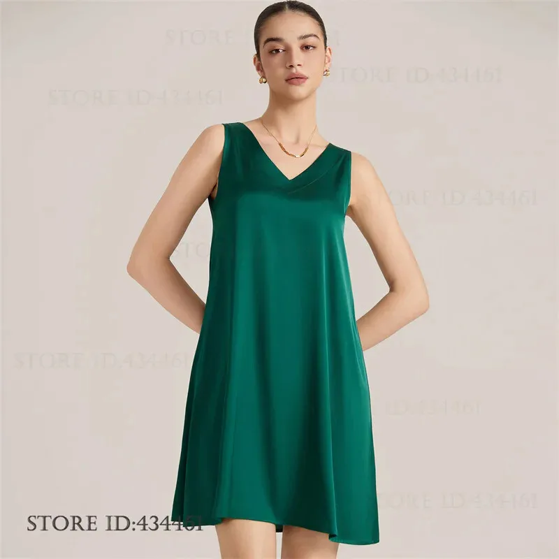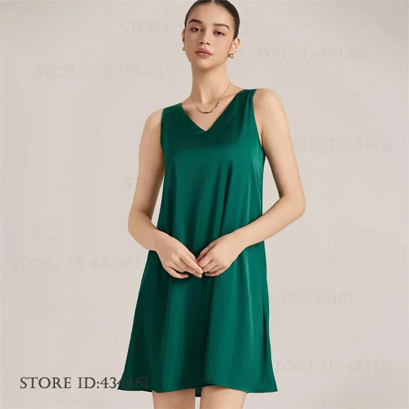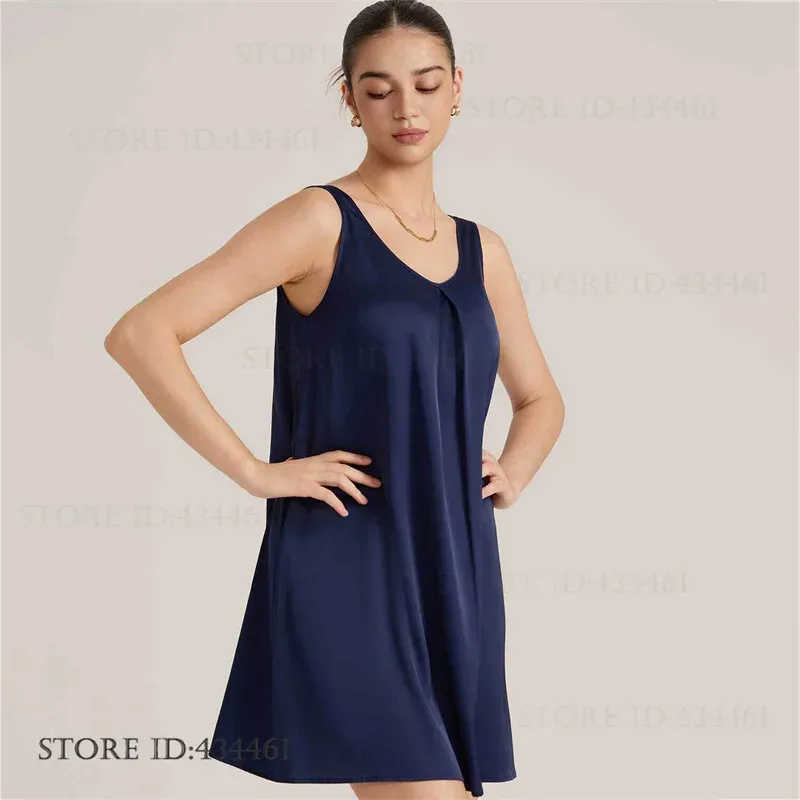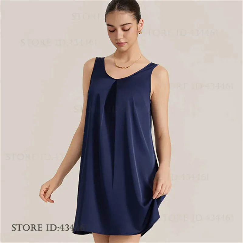 Women Nightgown Lingerie Ice Silk Sleepwear Sexy Nightshirt Sleeveless Night Dress Sleep Shirt Female Sexy Home Dress Loungewear