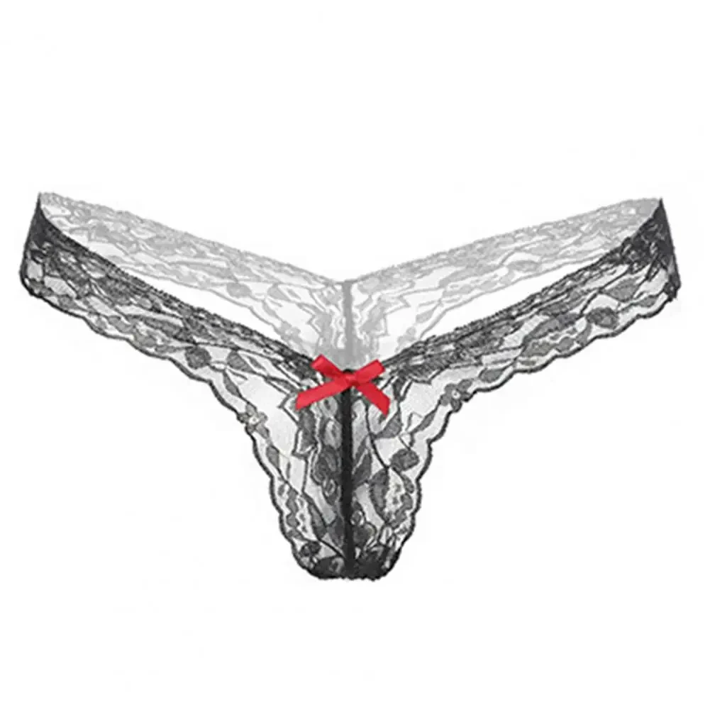 Women\'s Panties Sexy Low Rise Lingerie Thongs Female Underwear Fun Thong T-pants Bow Lace Breathable Briefs Elastic Underpants