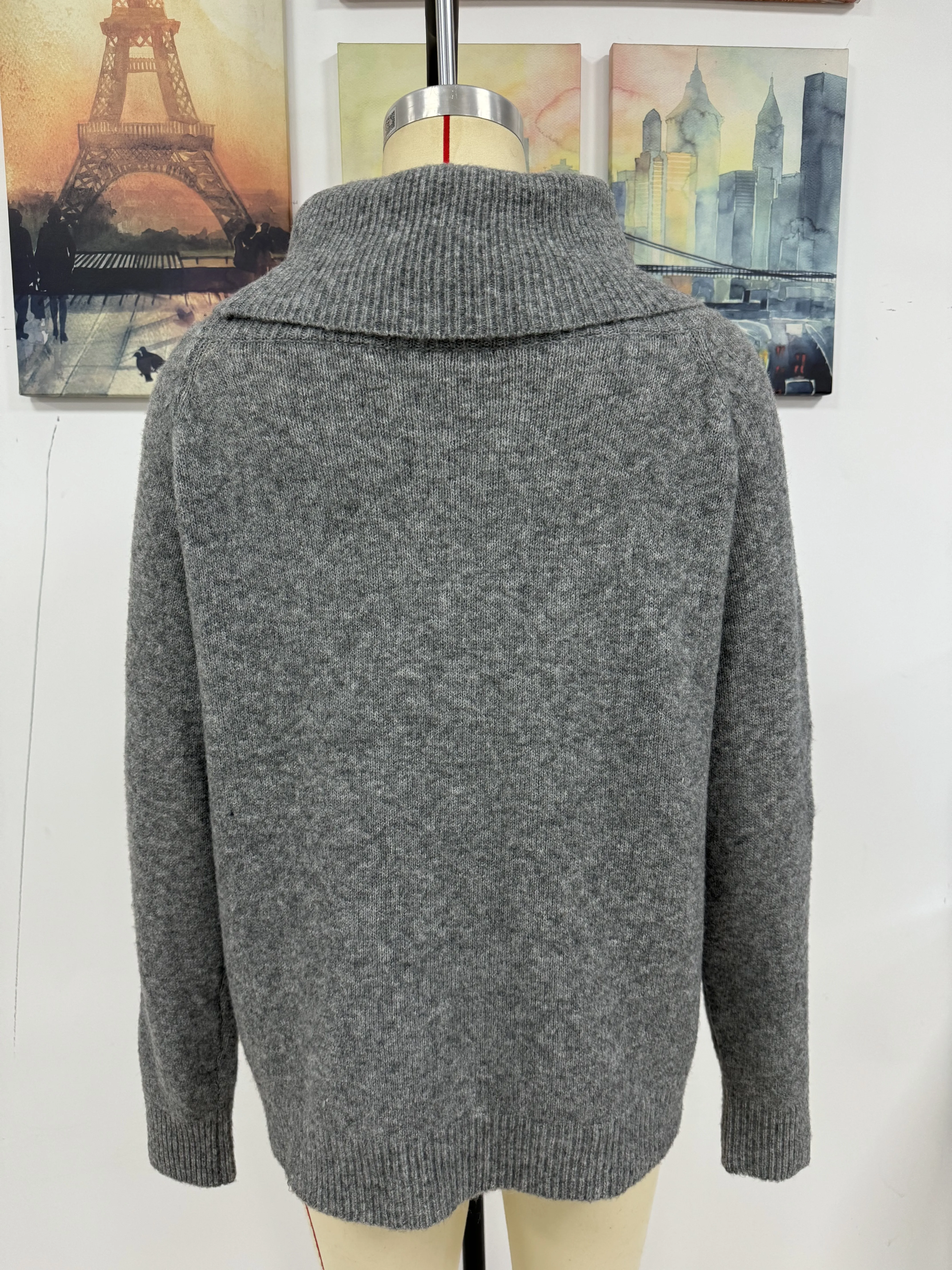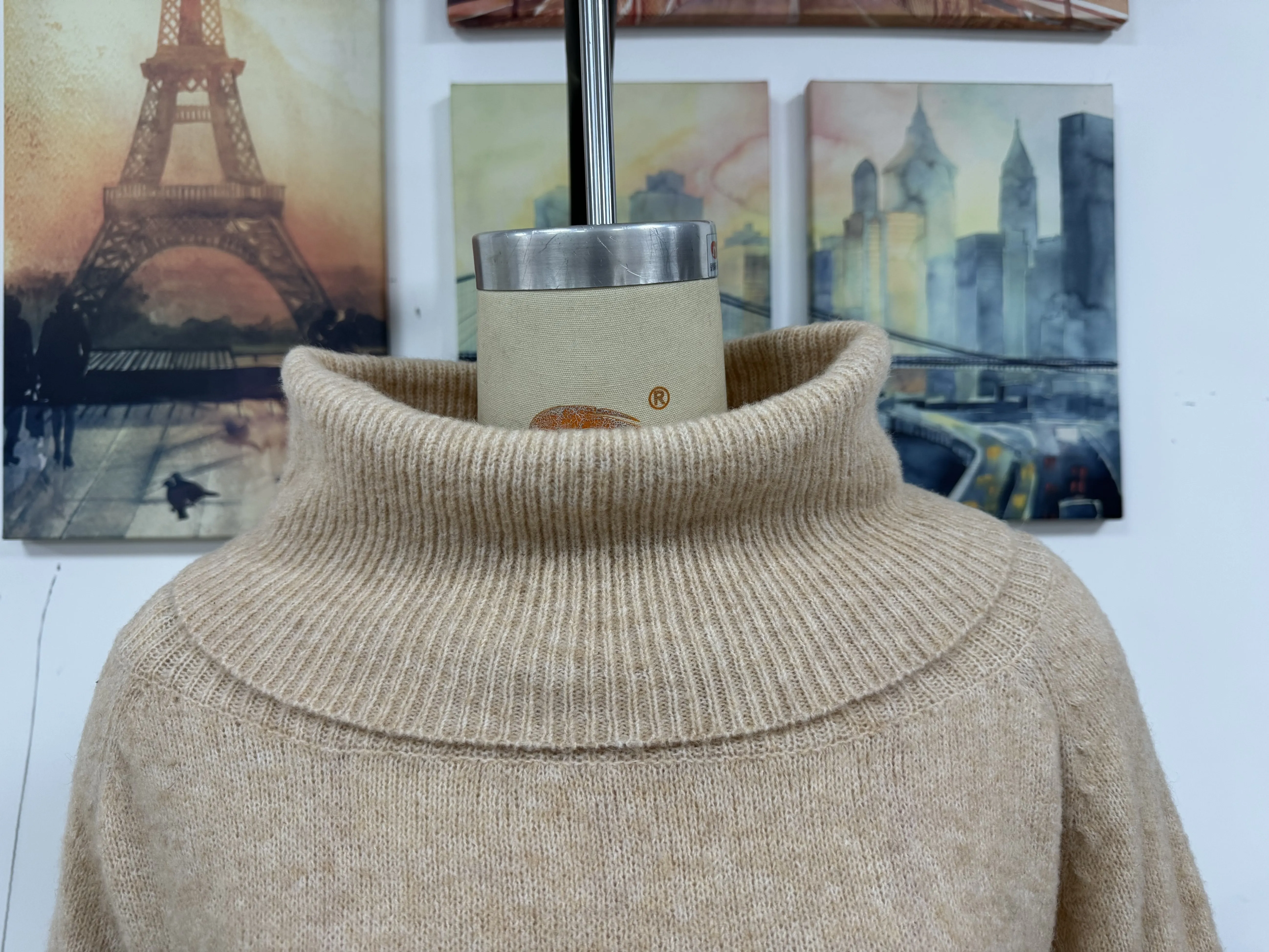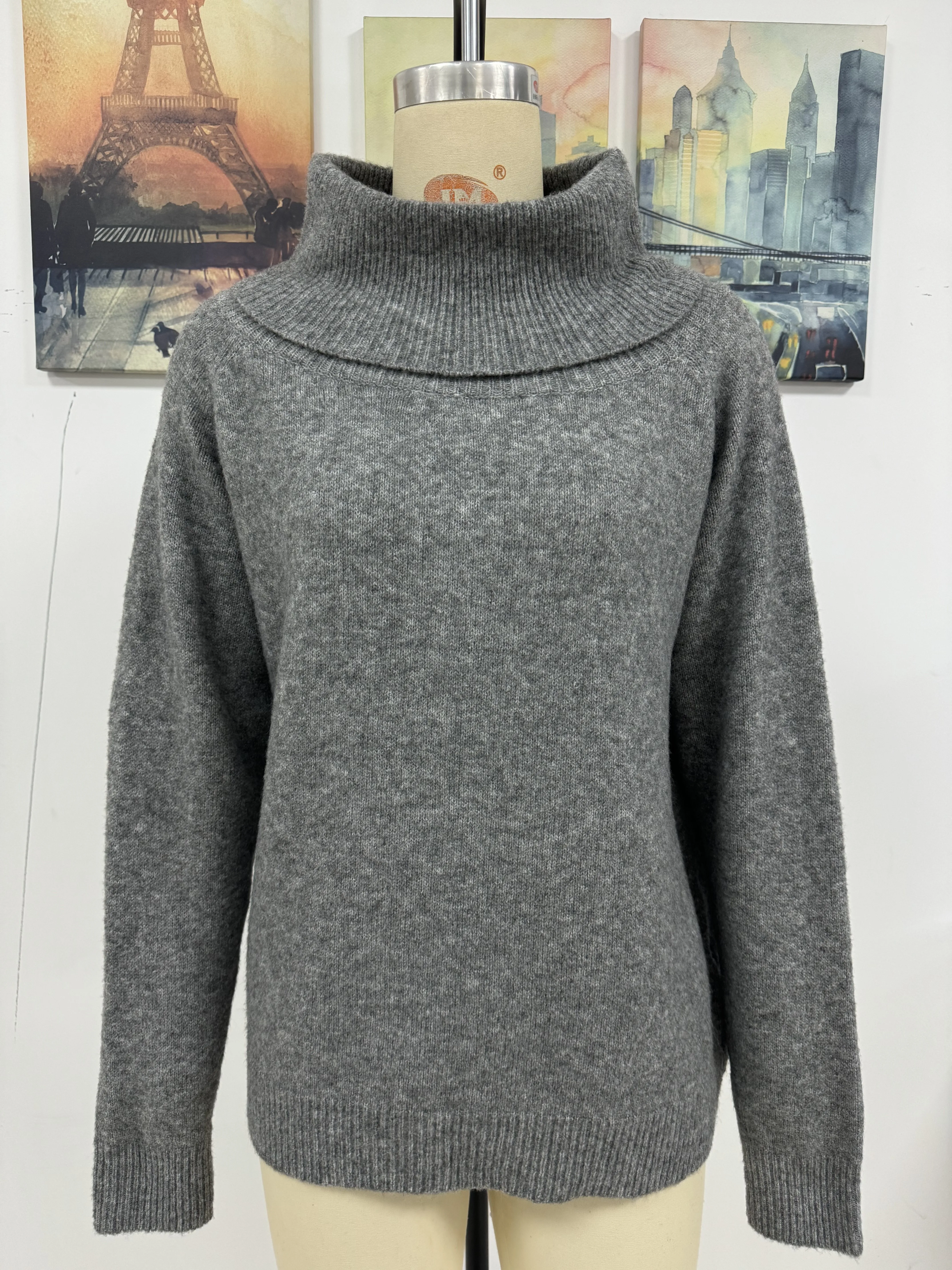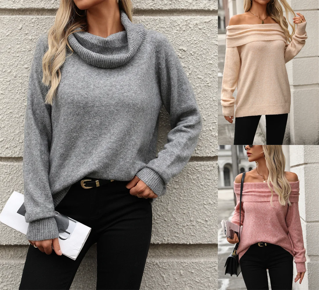 Women Sweater 2024 Winter Casual Heaps Collar Knitted Solid Long Sleeve Pullover Ladies Autumn Trend Warm Off Shoulder Jumpers