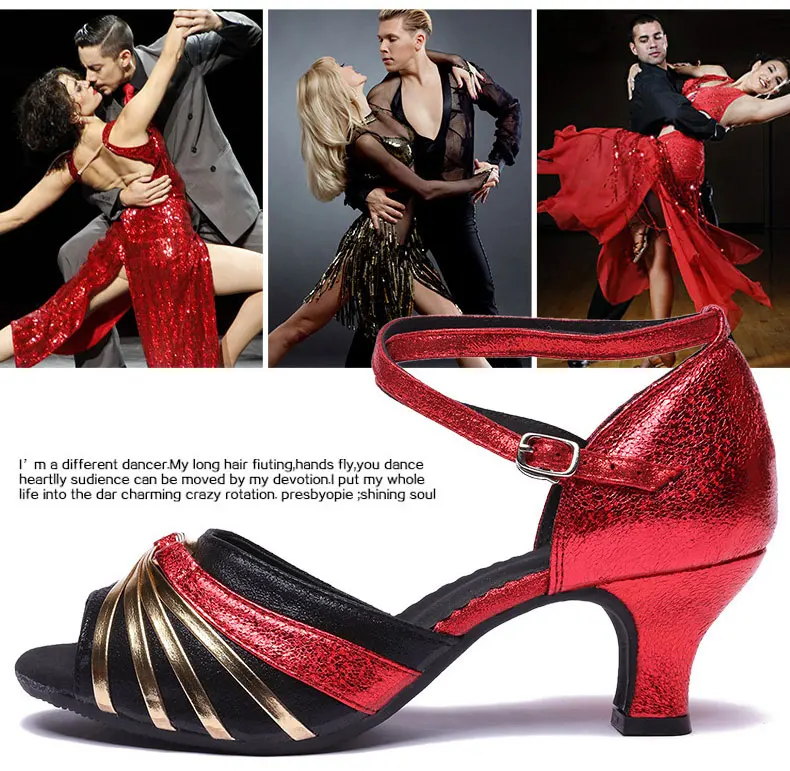 Women's Bachata Swing Salsa Latin Ballroom Dance Shoes Outdoor High Heels Peep Toe Performance Latin Dance Shoes for Woman