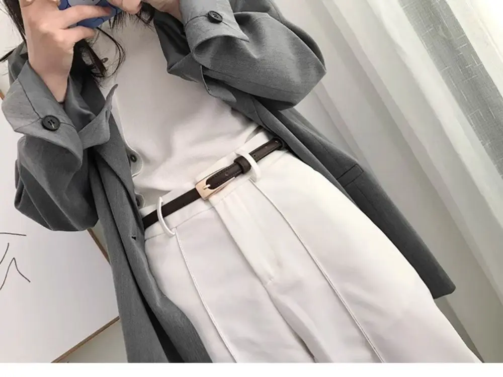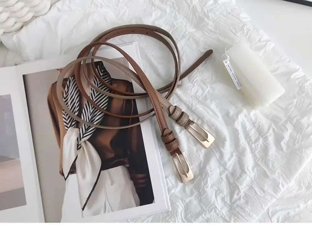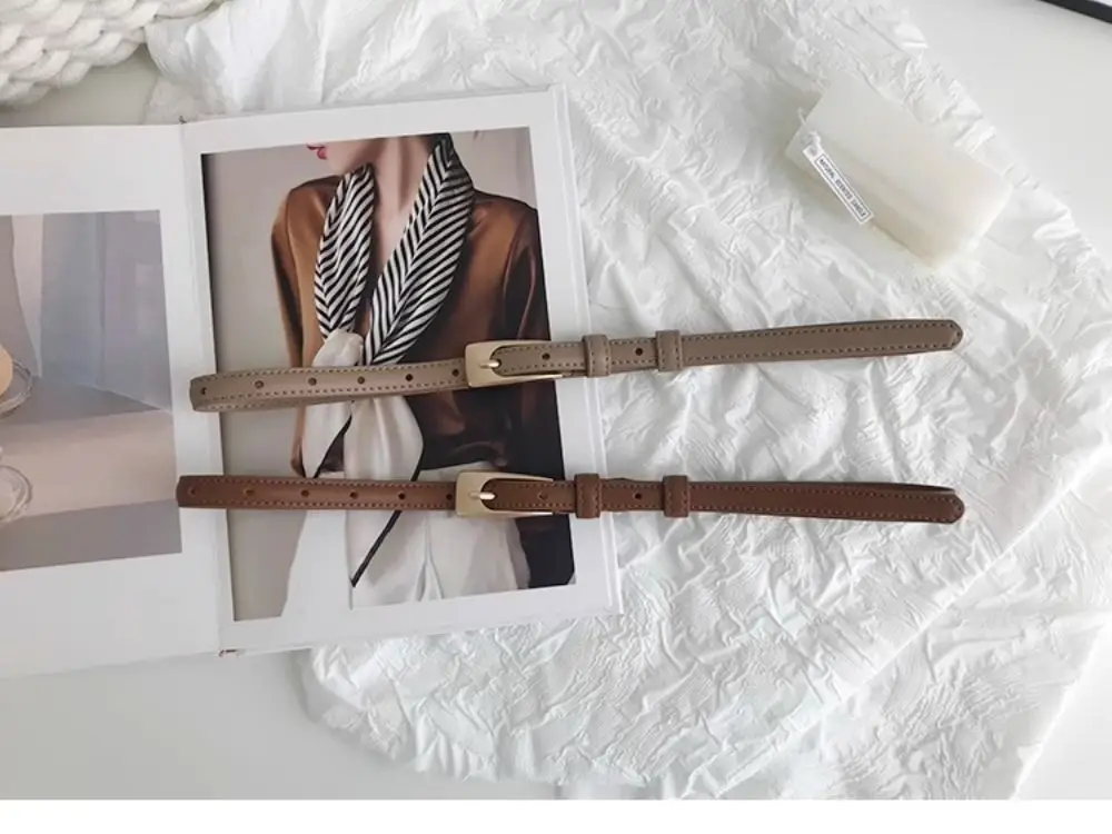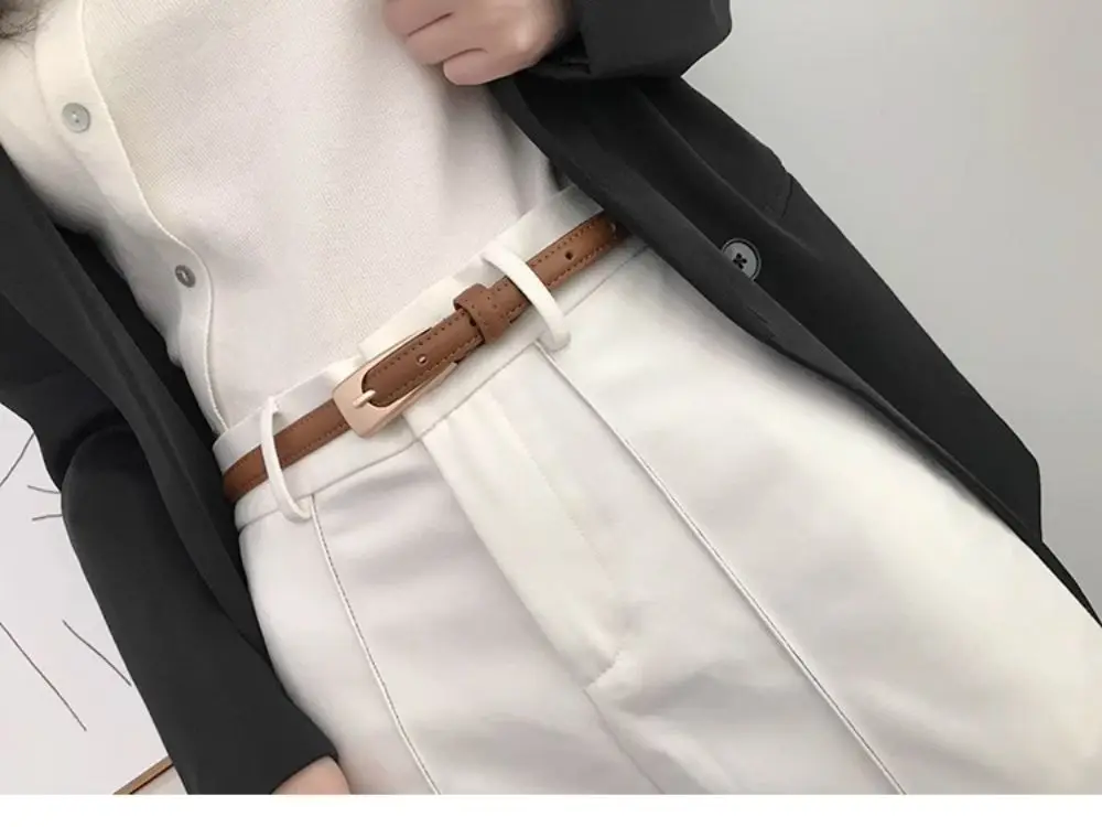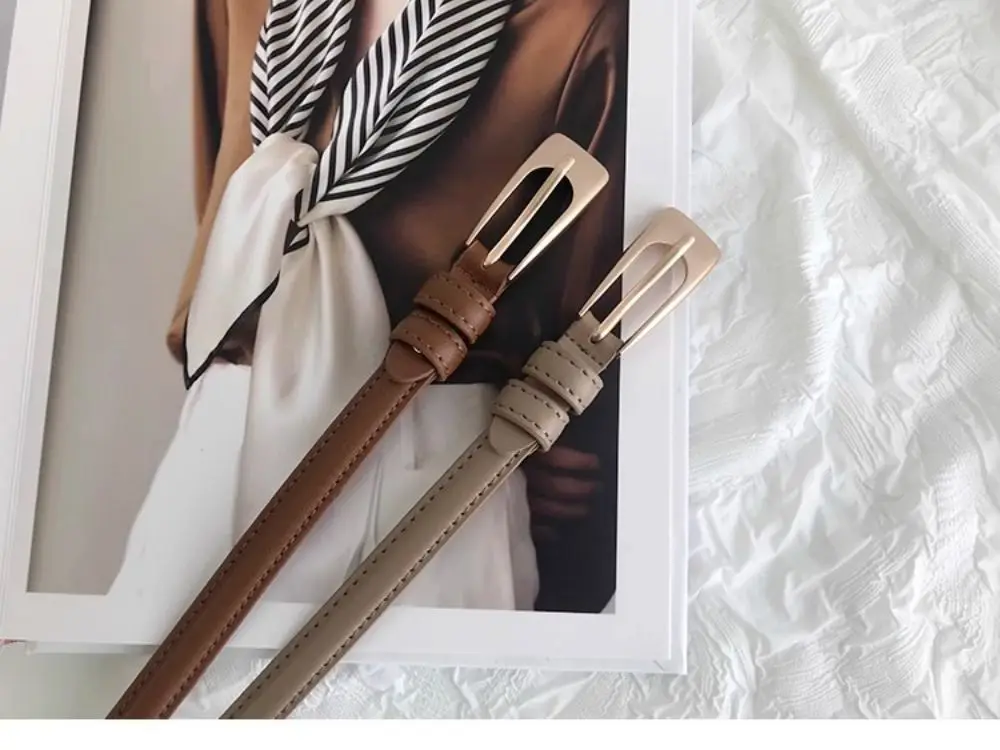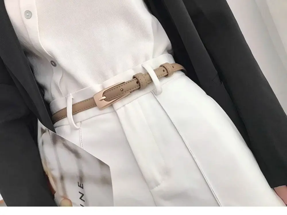Women's Belt Minimalist Trendy Thin Belt High End Authentic Casual Versatile Needle Button Belt with Skirts Jeans Lady Belts New