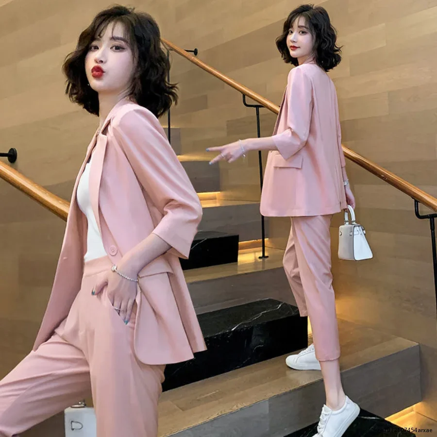 Women's Business Suit Summer New Fashion Temperament Casual Online Celebrity Business Suit Small Professional Suit Two Pieces