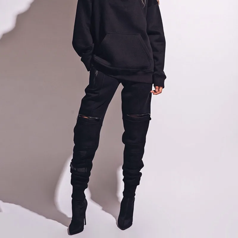 Women's clothing trousers Trendy High-Waisted Solid Color Pants Zipper Casual Sports Pants Leisure sports and fitness trousers