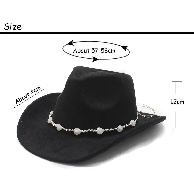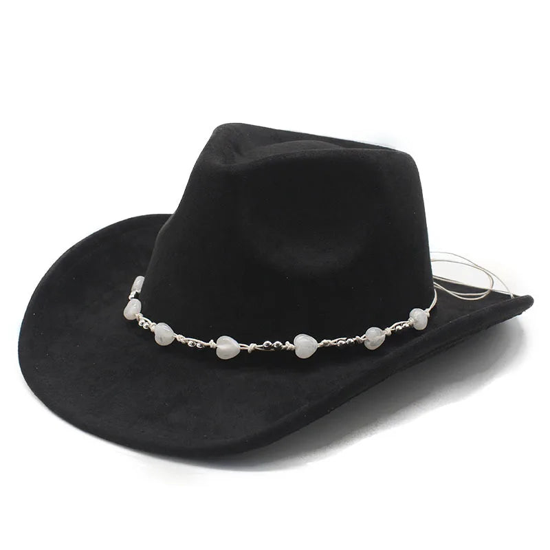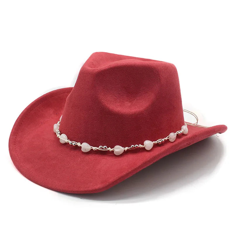 Women's Elegant Western Hat - Curved Brim Faux Suede Polyester Cowboy Hat (57-58cm) with White Heart Band