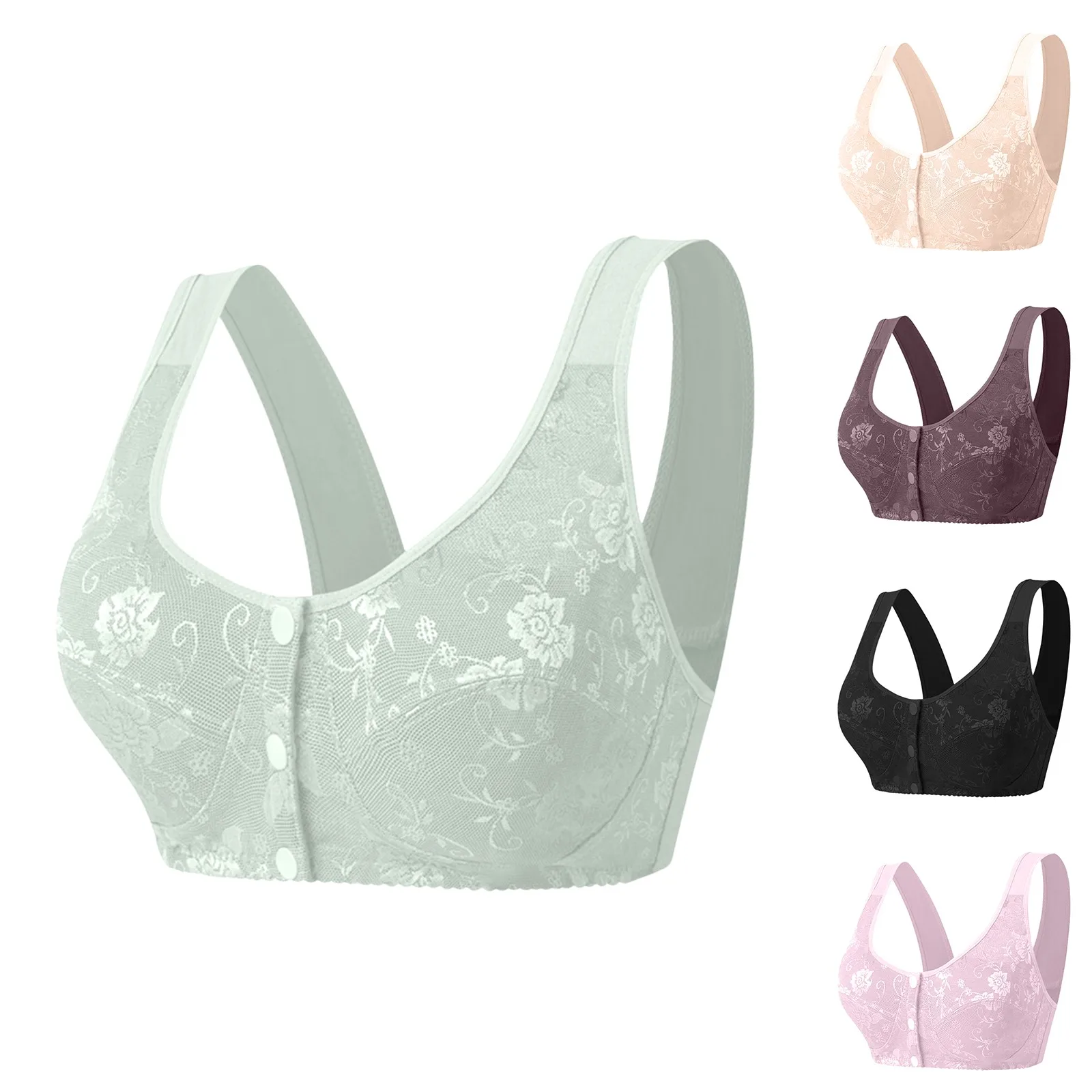 Women'S Front-Clasp Bra Lace Print Vest Design Comfortable Without Underwire Suitable Daily Wear All Season Everyday Home Scenes