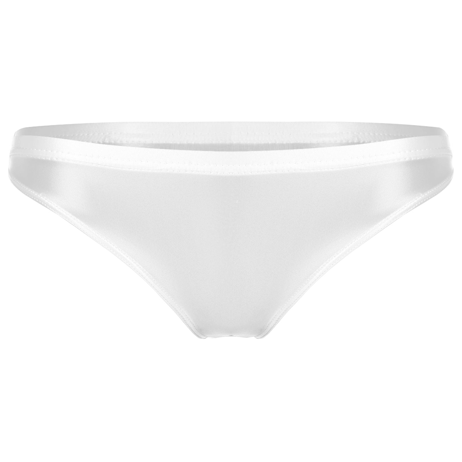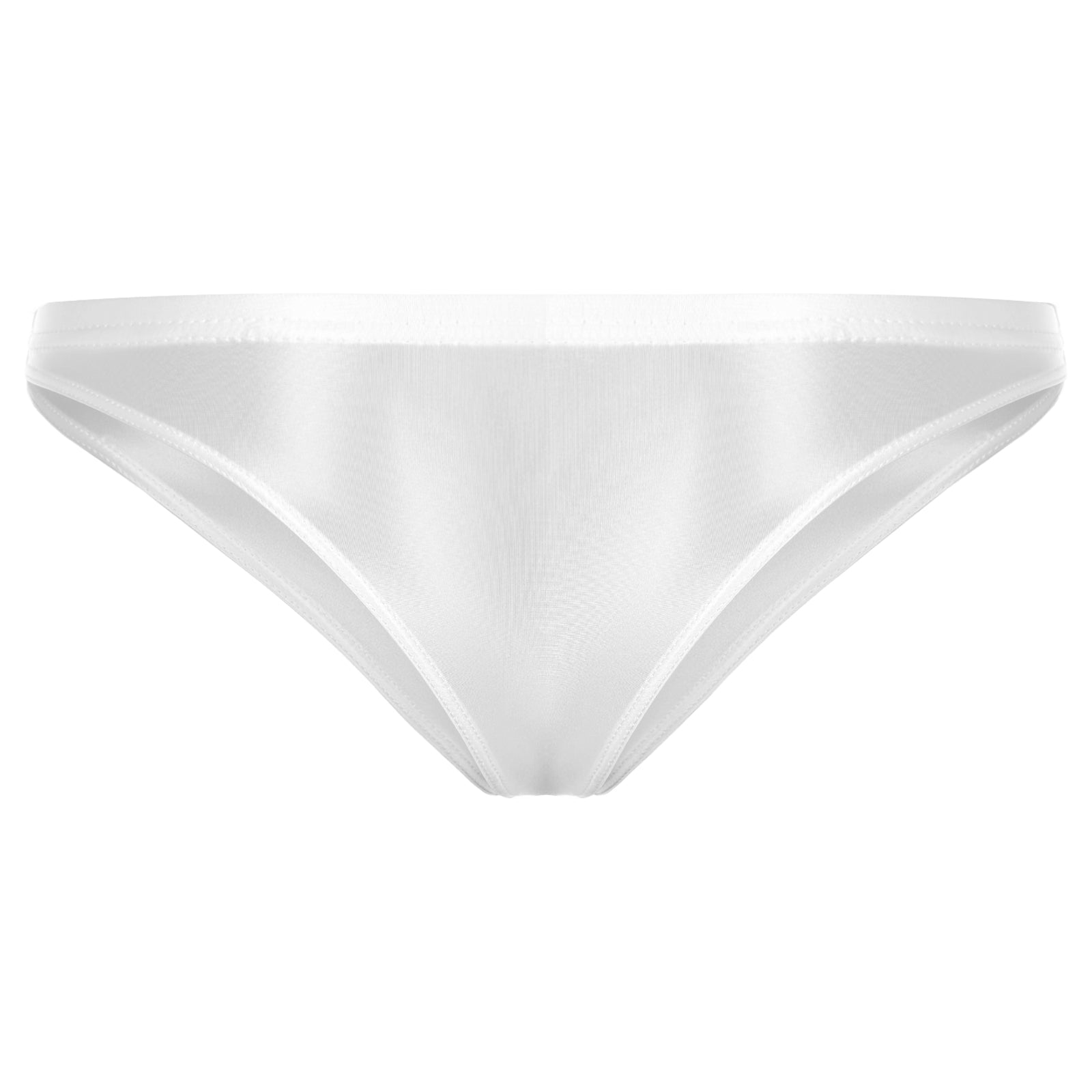Womens Glossy Low Rise Briefs Solid Color Elastic Waistband Panties.
