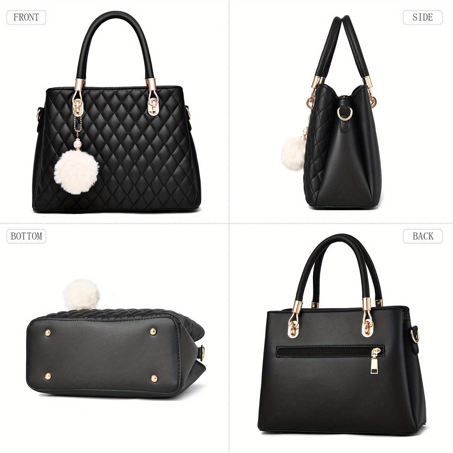 Womens Handbags Purses Top-handle Totes Satchel Shoulder Bag For Ladies With Pompon