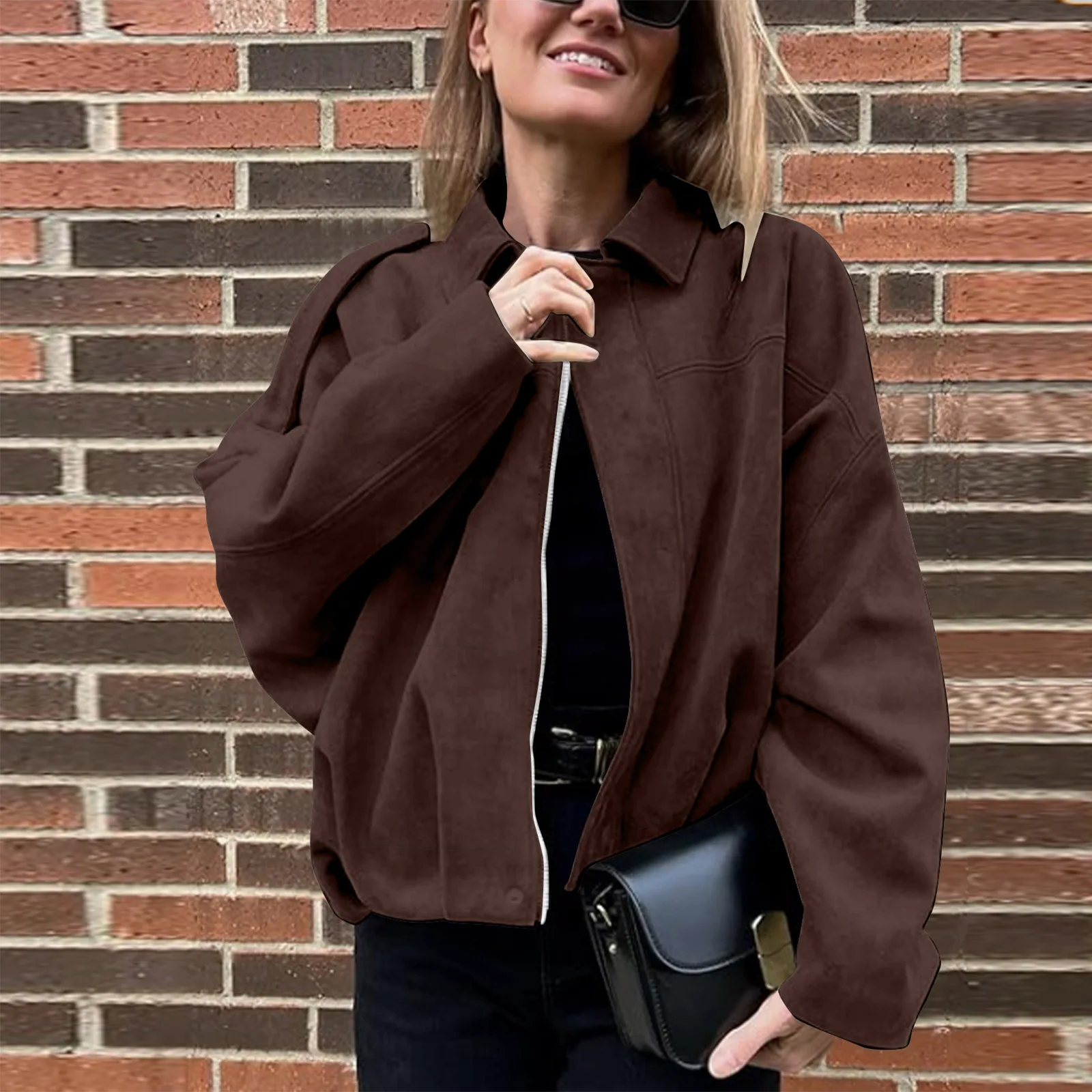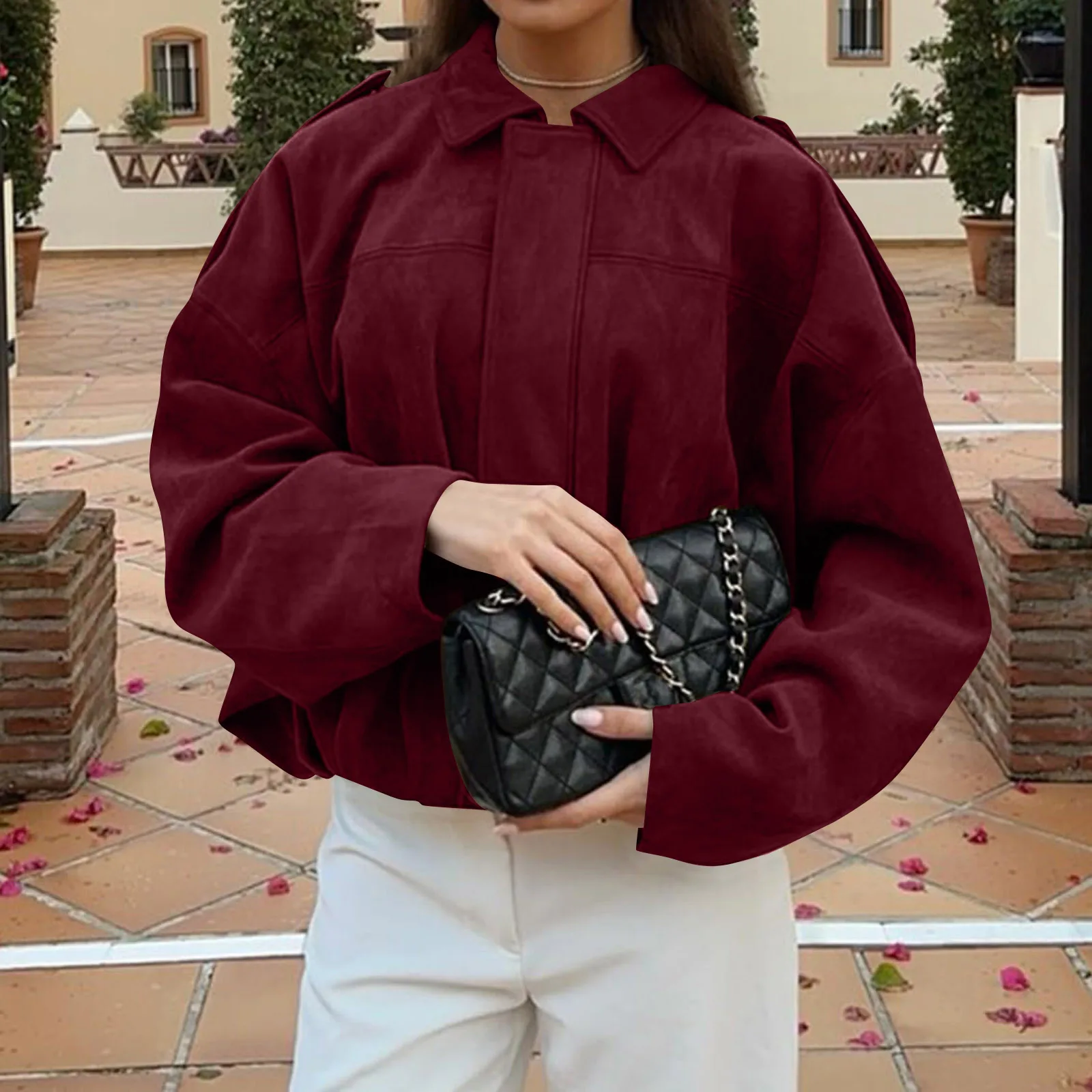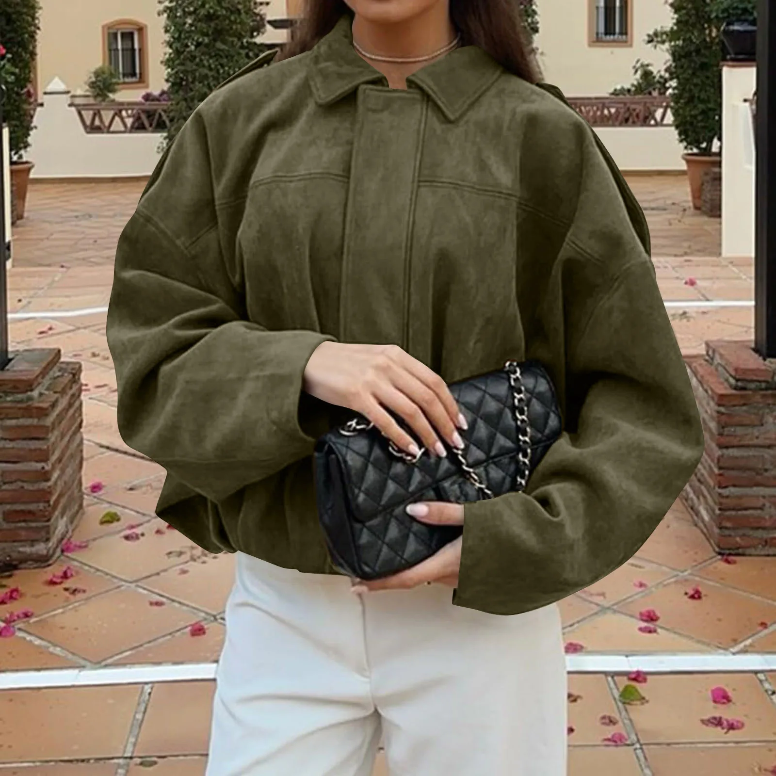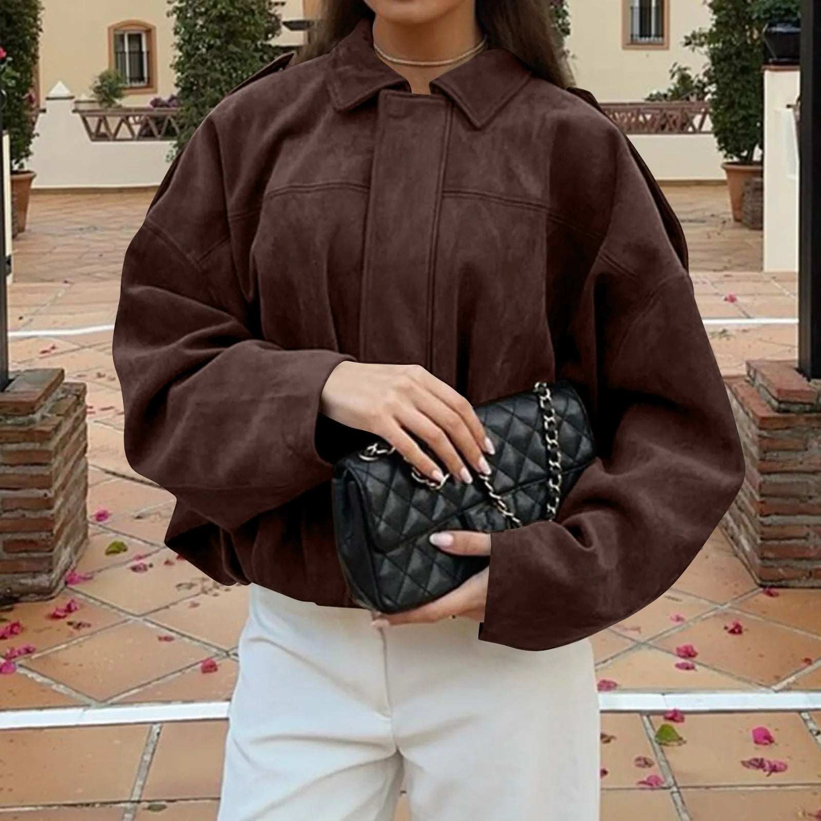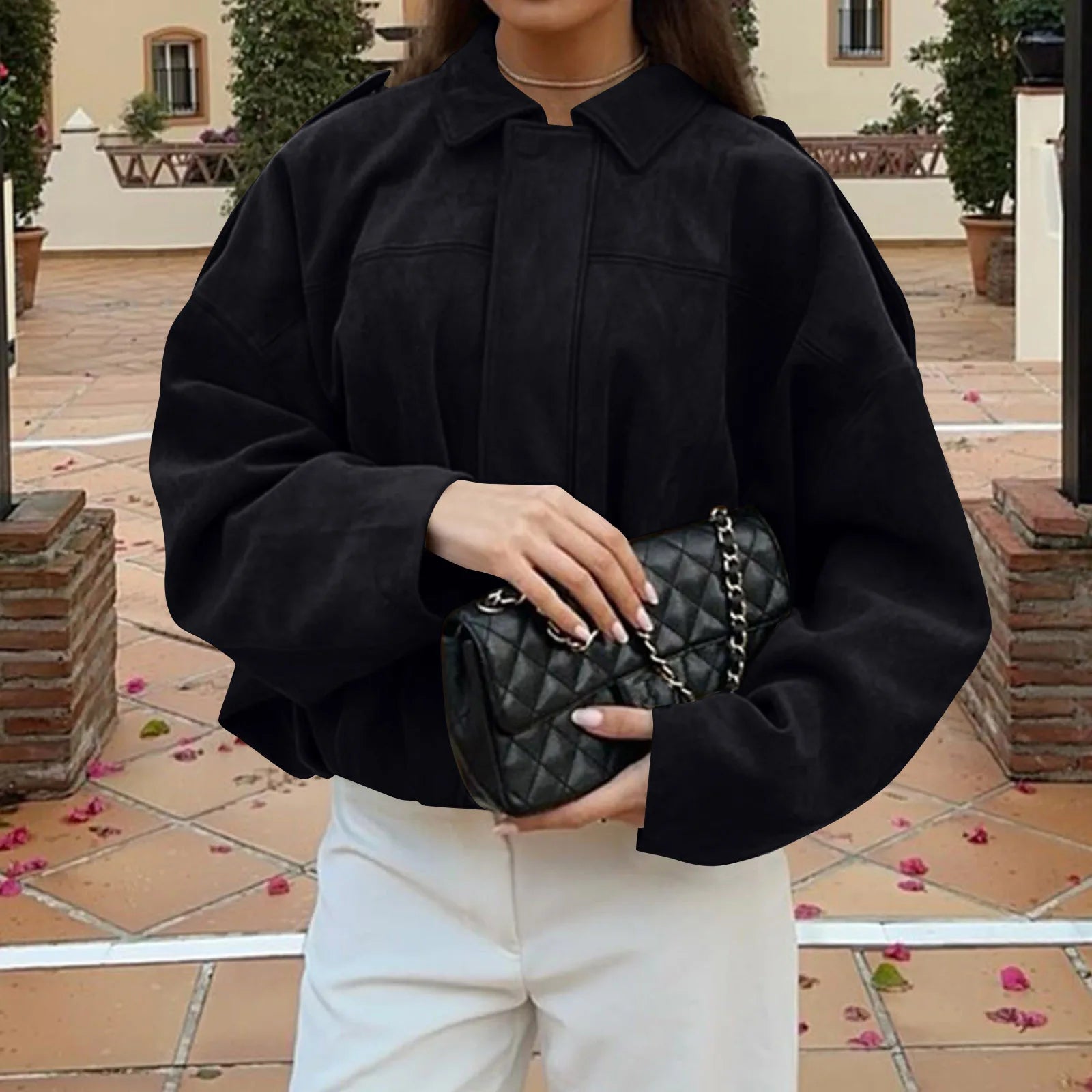 Women's Jackets Coat Fashion Turn-down Collar Long Sleeve Loose Coats Vintage Female Outerwear Chic Street Youth Jackets Tops