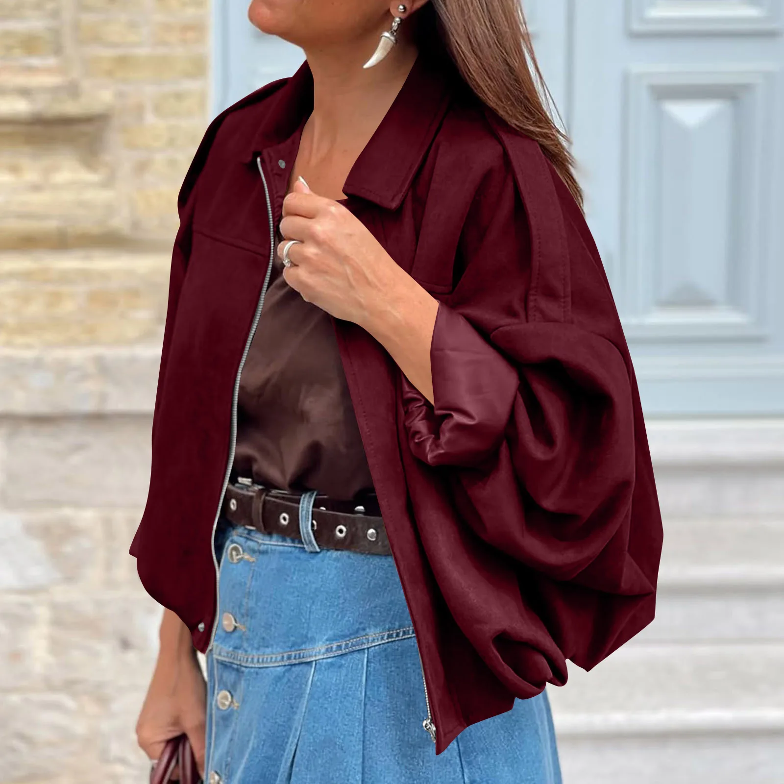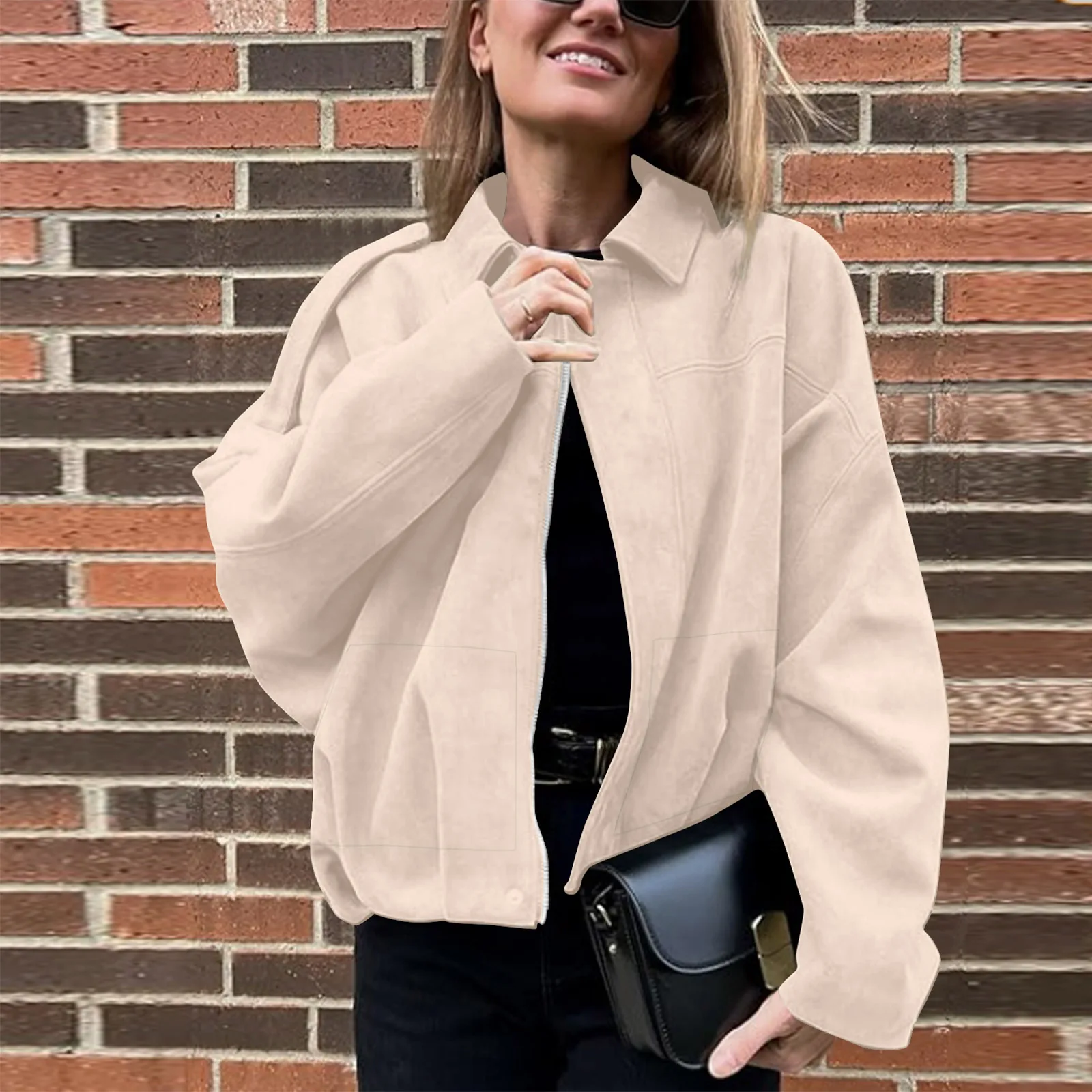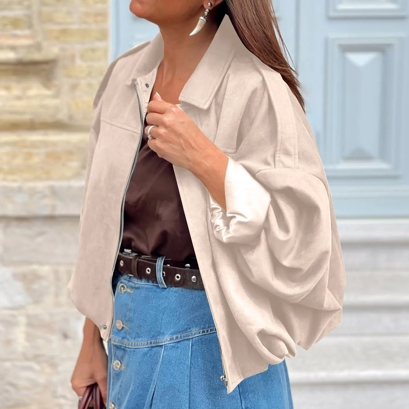 Women's Solid Color Fashionable Sleeve Long Sleeved Zipper Casual Top Jacket Jacket