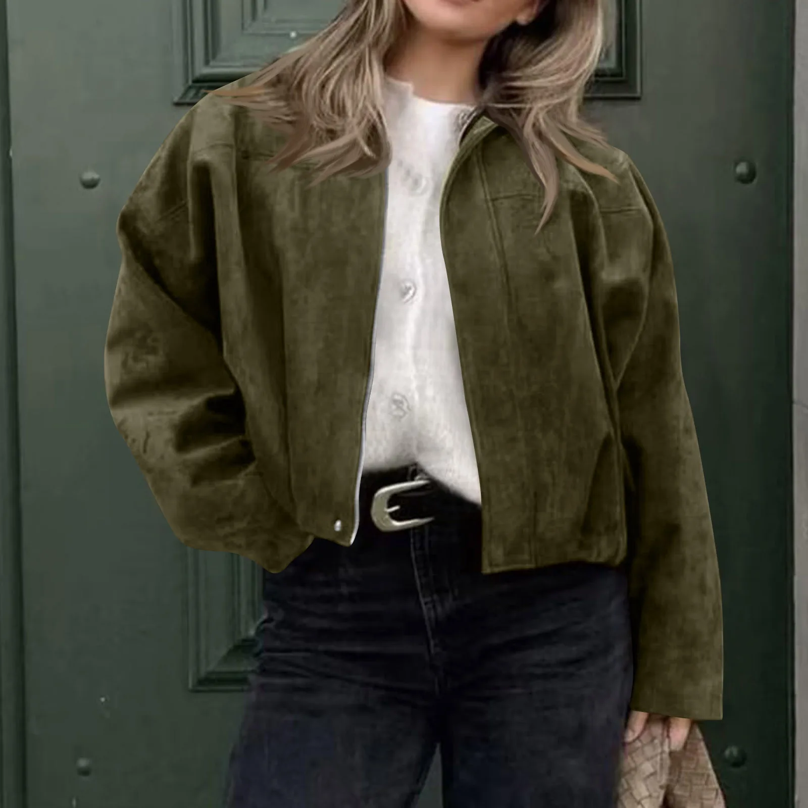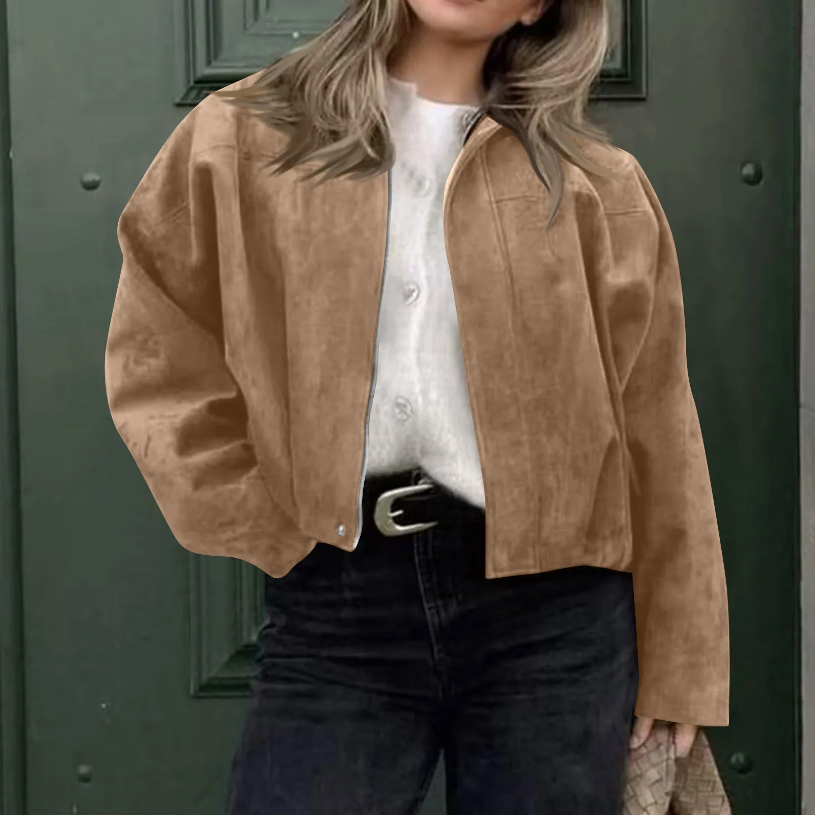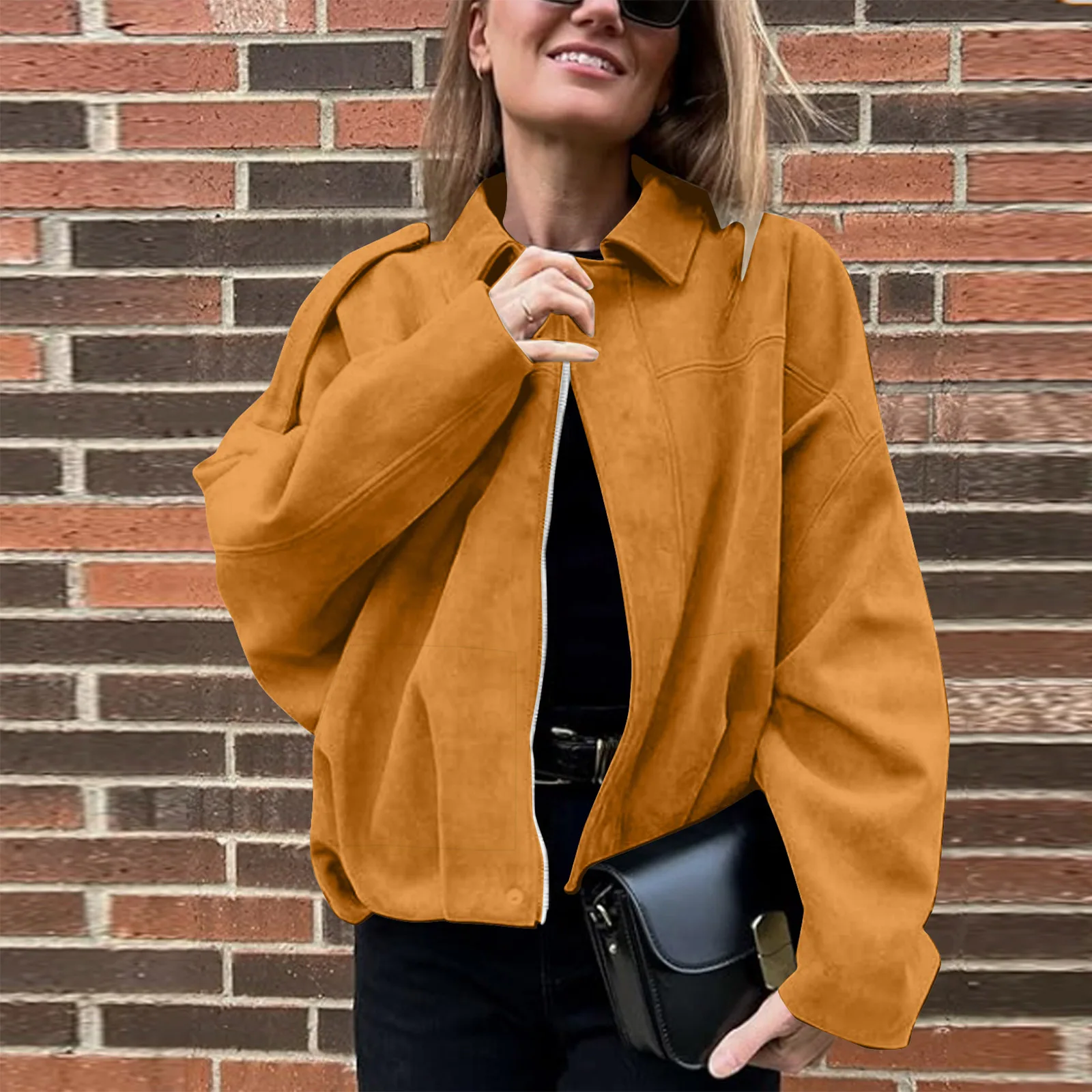 Women's Solid Color Fashionable Sleeve Long Sleeved Zipper Casual Top Jacket Jacket
