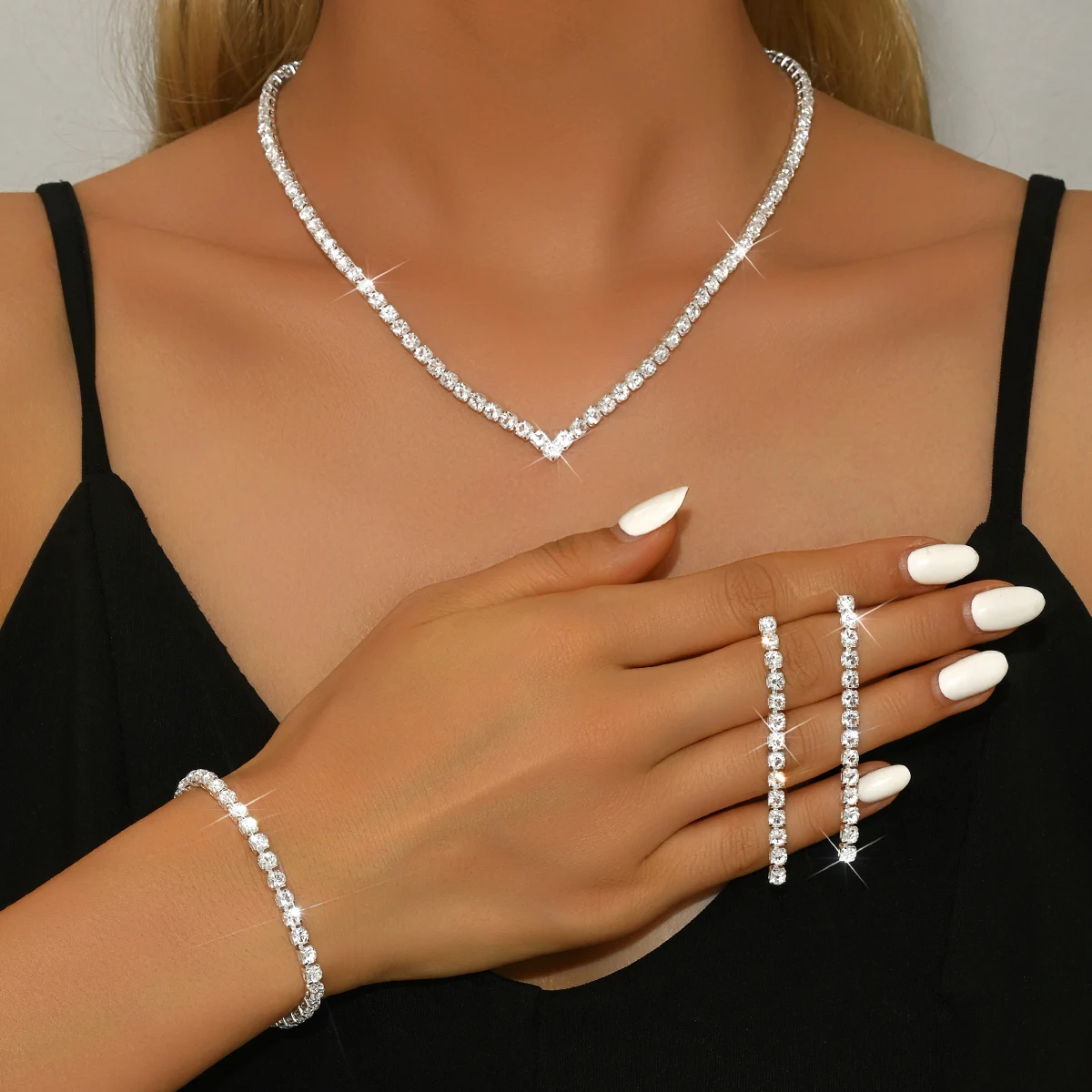 Women's Jewelry Set zircon Copper Alloy Chain Necklace Earrings Bracelet Casual Accessories for Weddings Parties Holidays