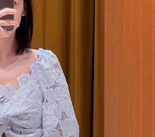 Women's lace two-piece suit short long-sleeved slim-fit top or skirt