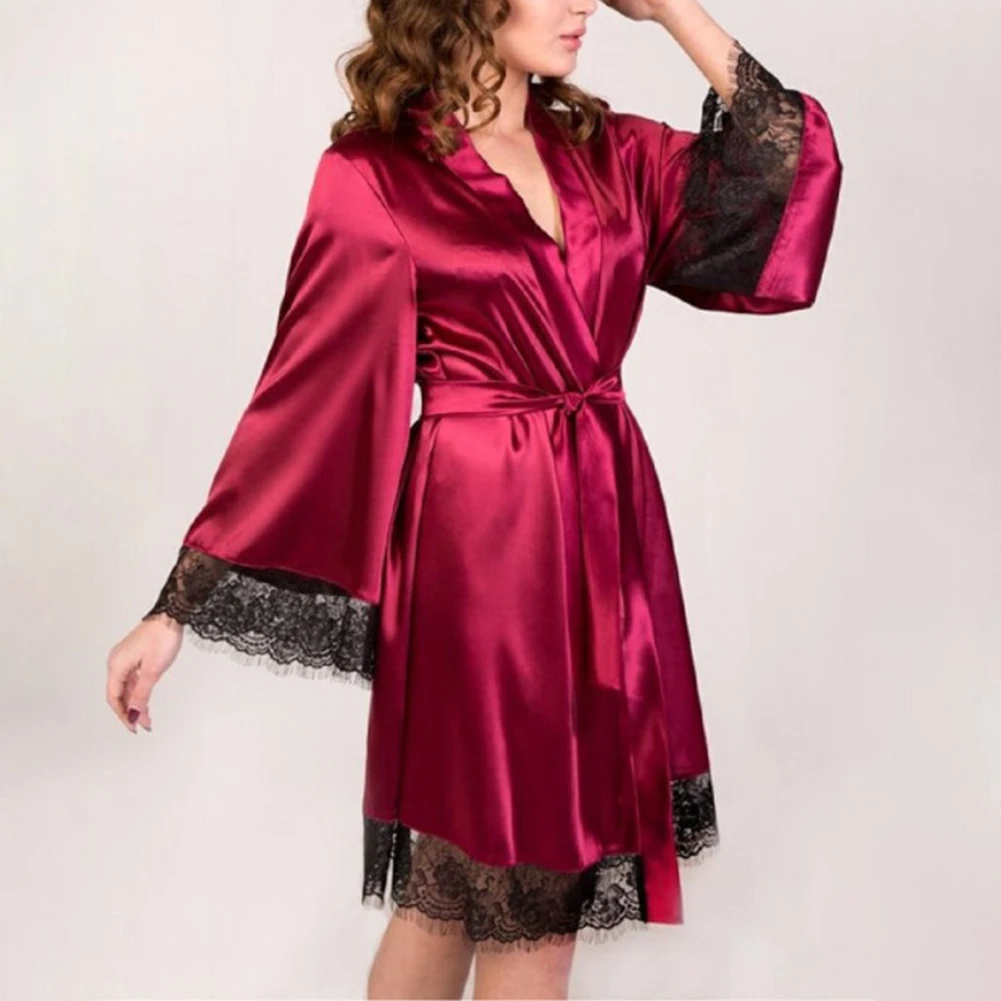 Women's Robes Comfortable Ice Silk Ultra-Thin Sleepwear Sexy Lace Edge Nightgowns Female Sleep Shirts Solid Color Night Dress