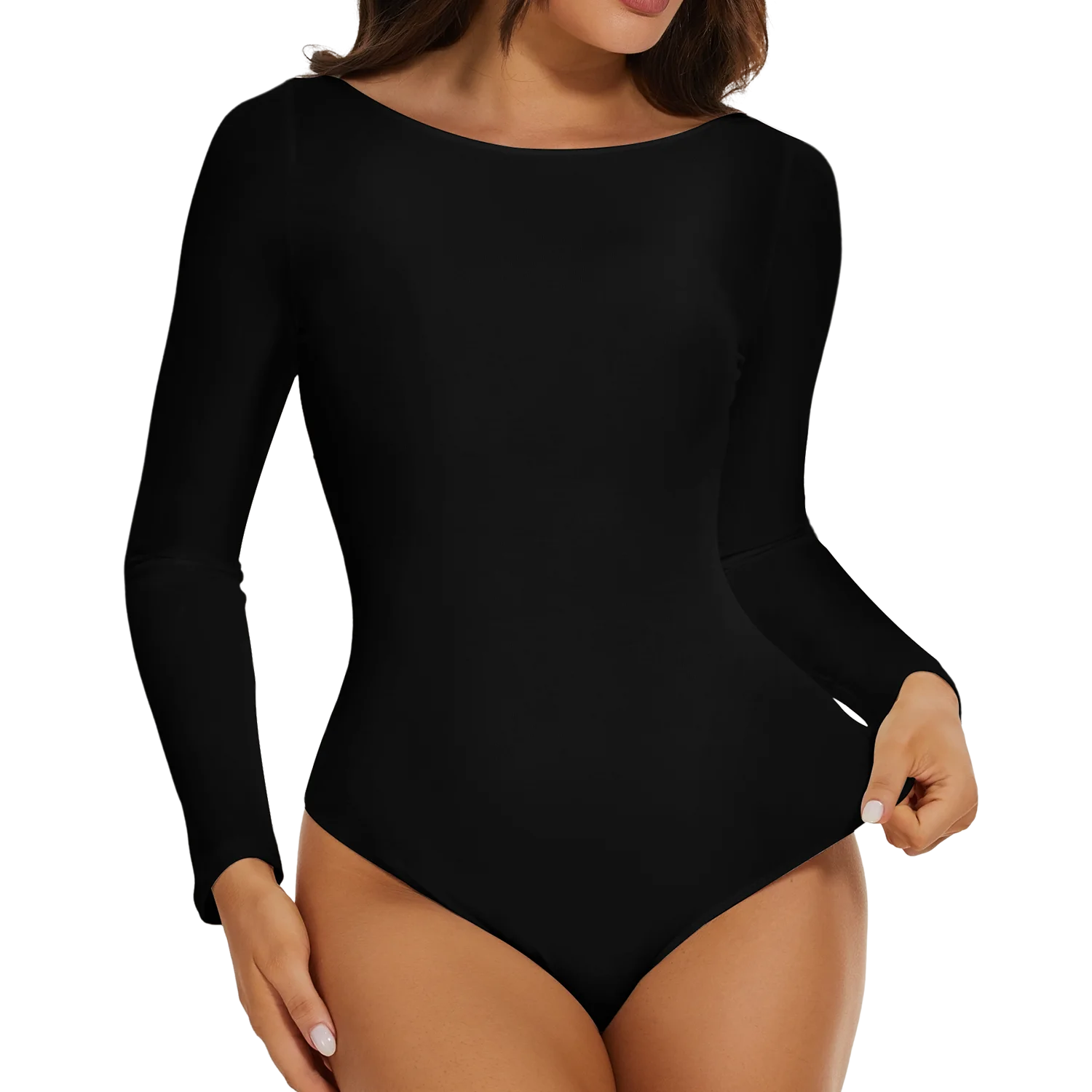 Slim-Fitting Long Sleeves: Featuring long sleeves that contour your figure, this bodysuit exudes sophistication and sensuality, perfect for layering or wearing solo.