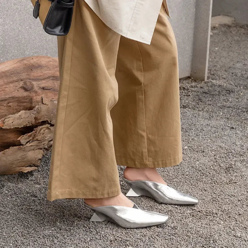 Women's Slippers 2025 New Summer Luxury Fashion Sandals Cover Toe Mid High Heels Rubber Sole Slippers Women's Shoes Sandals