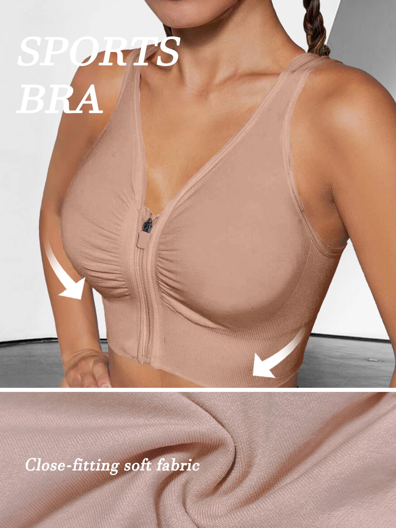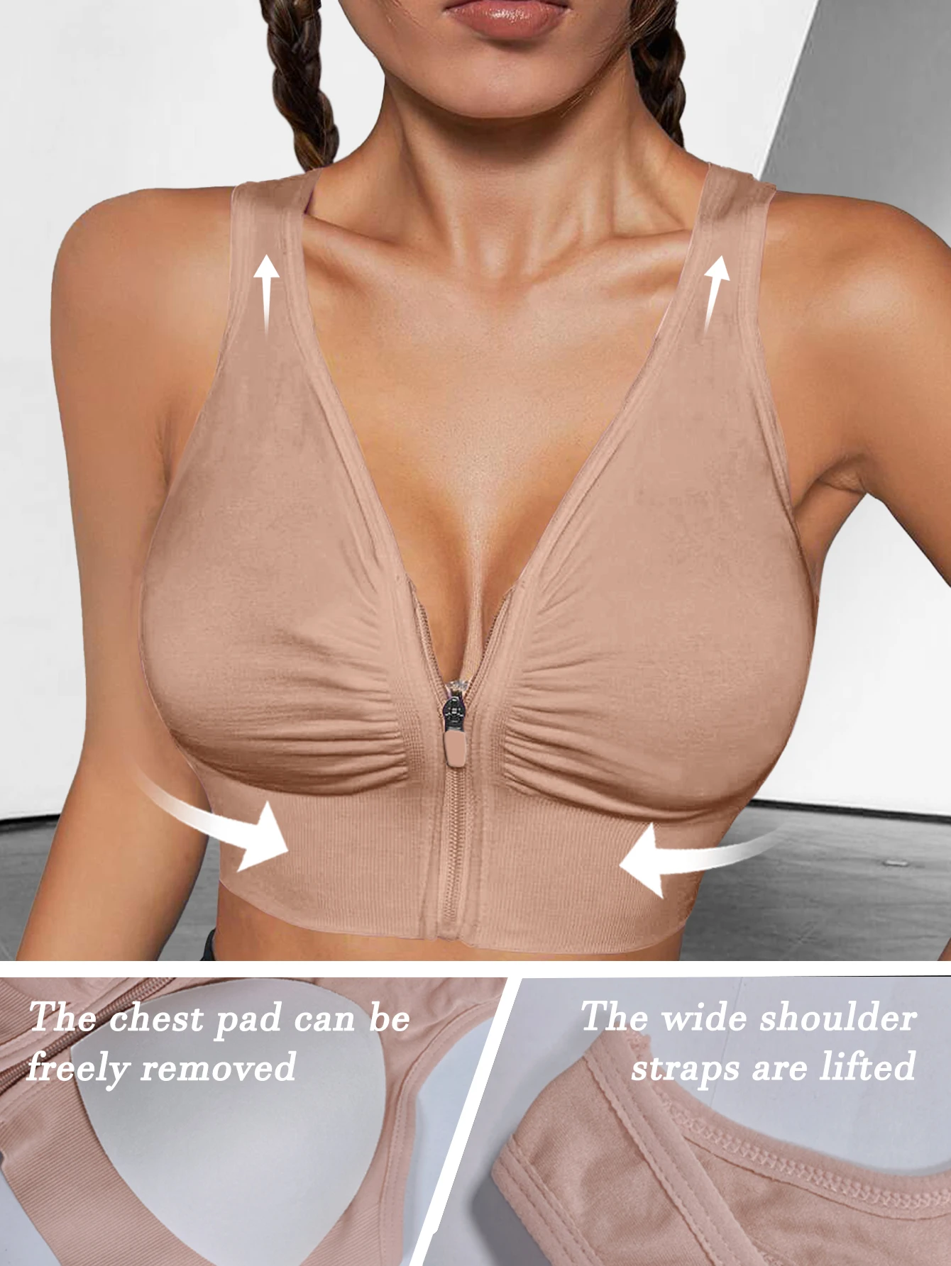 Women's Sports Bra with Front ZipperHigh Support,Shockproof, RacerbackFor Gym, yoga, Running Quick-DryFabric