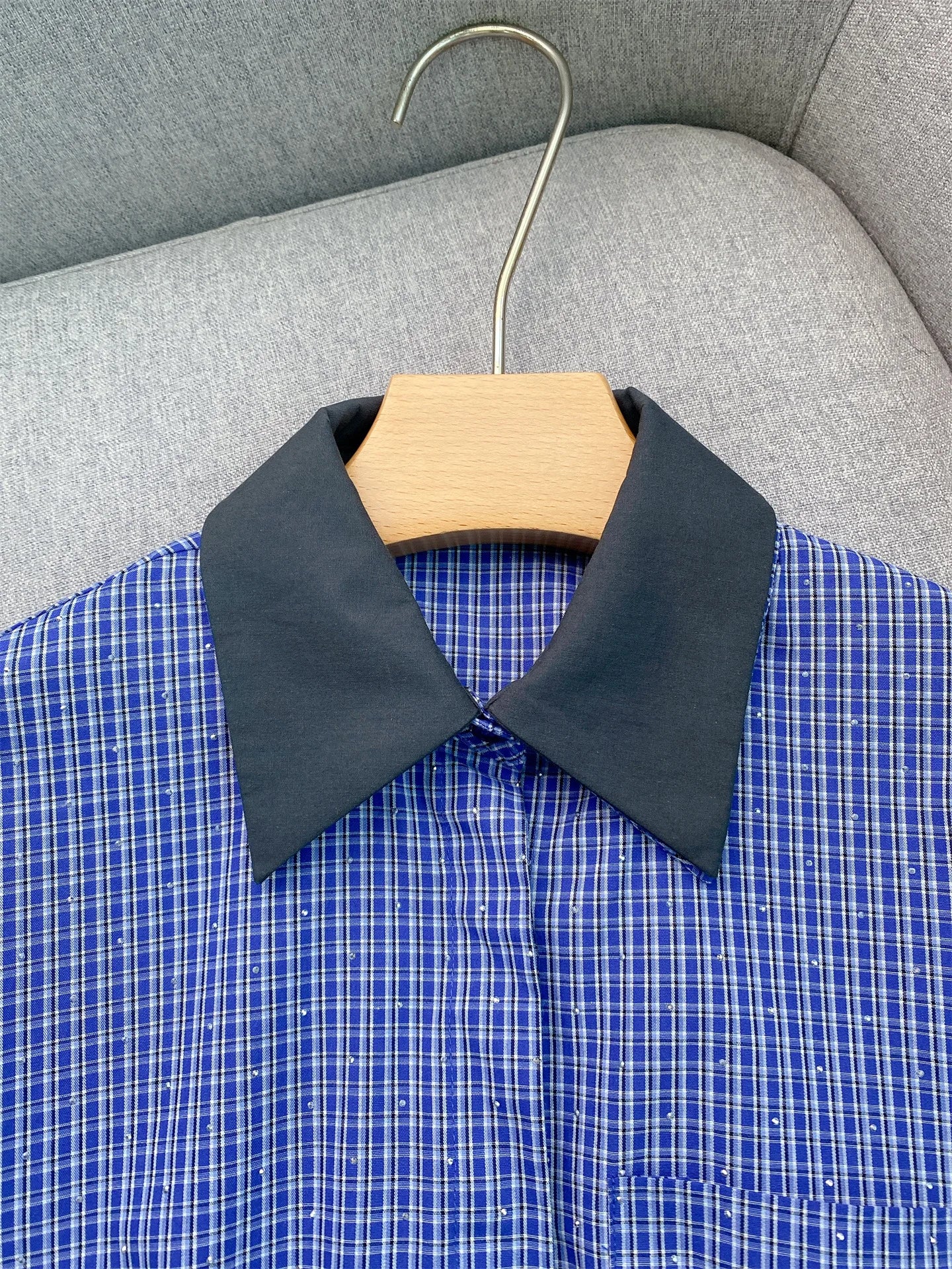 Women's stylish two-piece suit with diamond-studded lapel shirt or high-waisted slim-fitting mini dress
