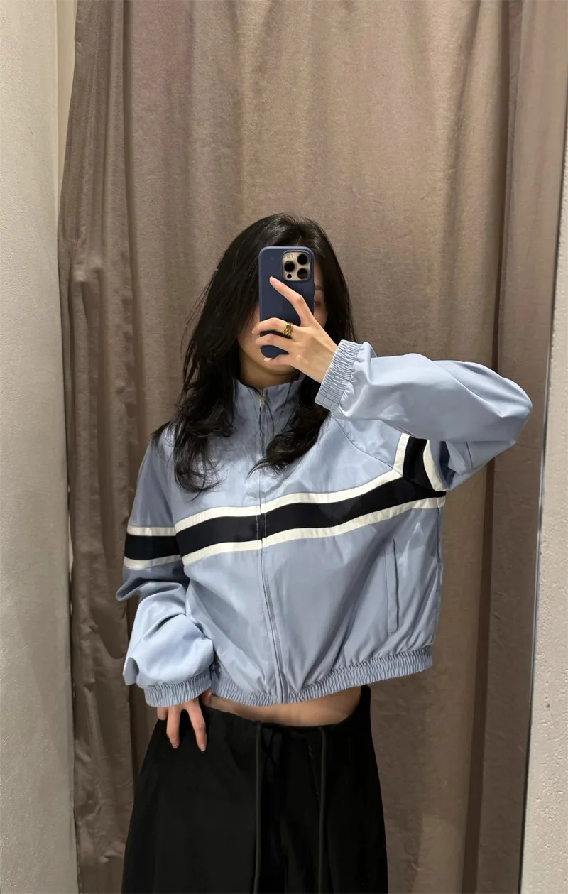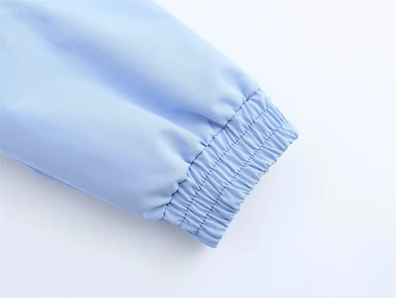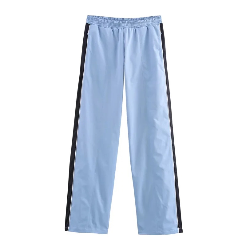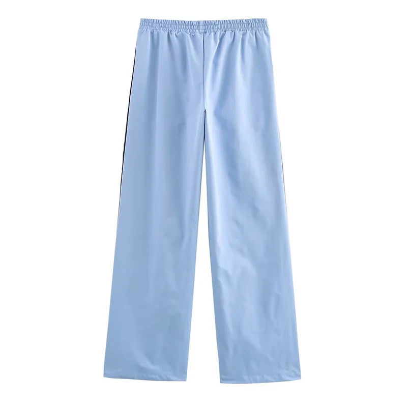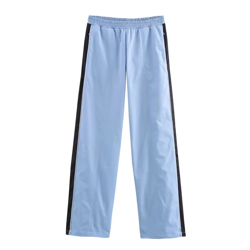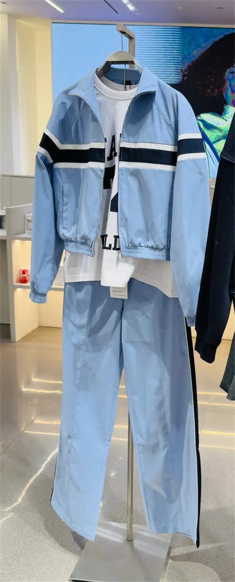 Women's Suit 2025 Autumn New Style Blue Long-Sleeve Striped Decorative Jacket and Pants Suit Casual Fashion Everyday Sports