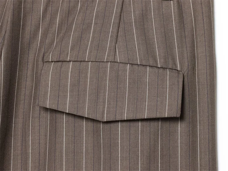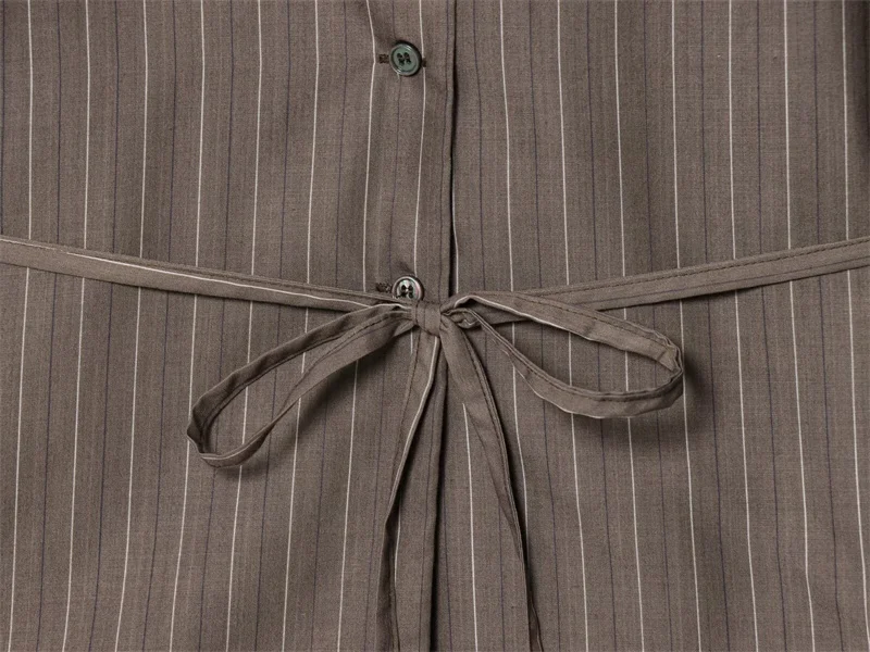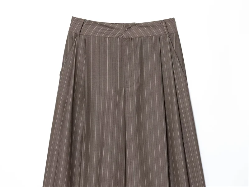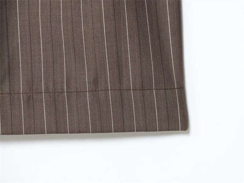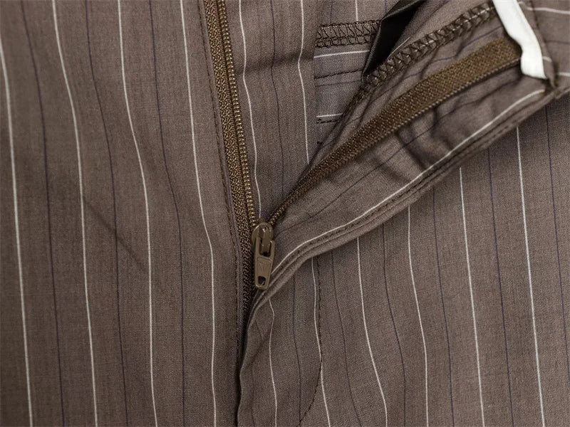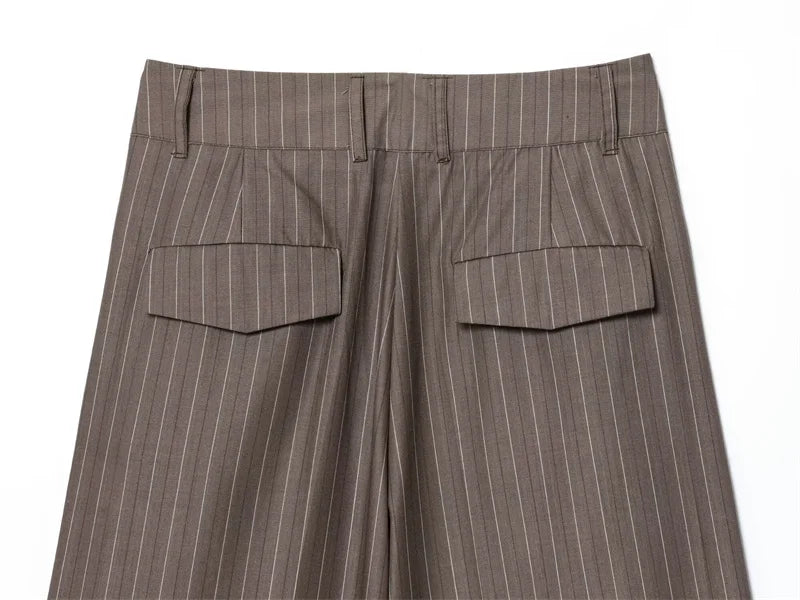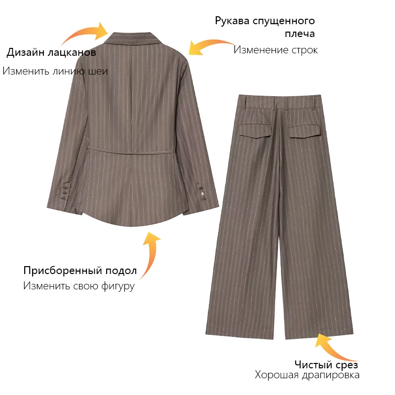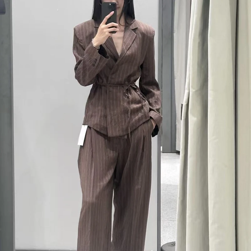 Women's Suit 2025 New Fashion Autumn Striped Shoulder Pads Belt Blazer and Pleated Pants Suit for Women Casual Chic Ladies Set