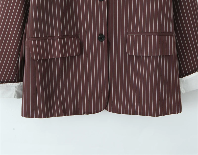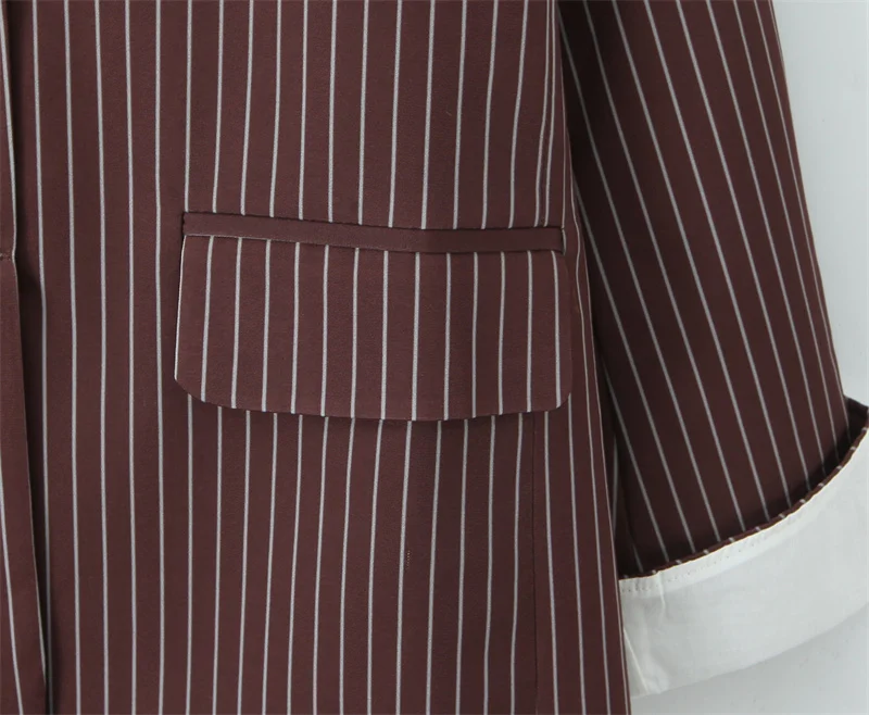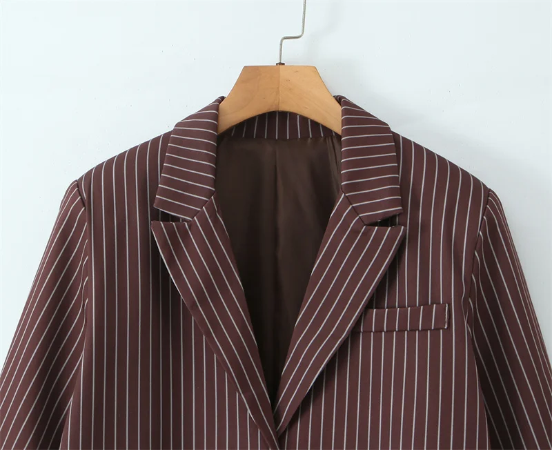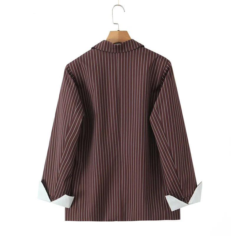 Women's Suit - Blogger Style Brown Striped Loose Fit Two-Button Versatile Blazer Spring and Autumn Fashion Women's Wear