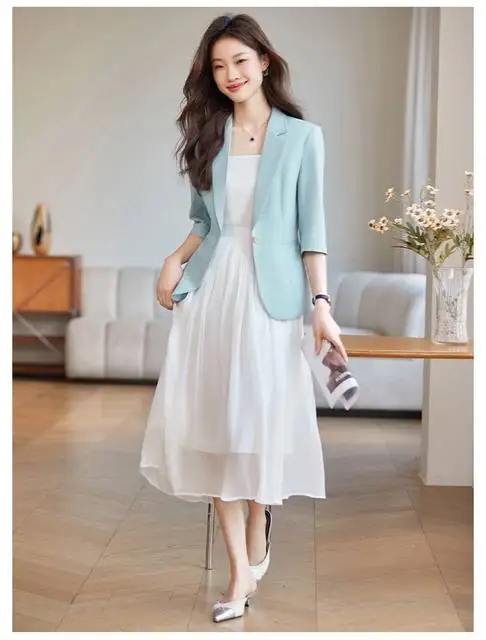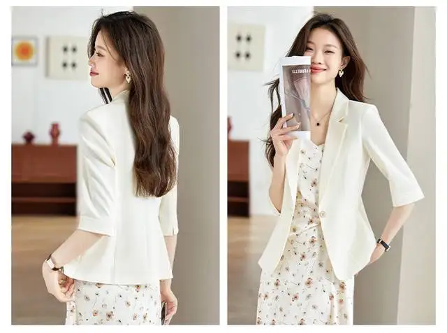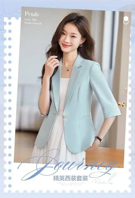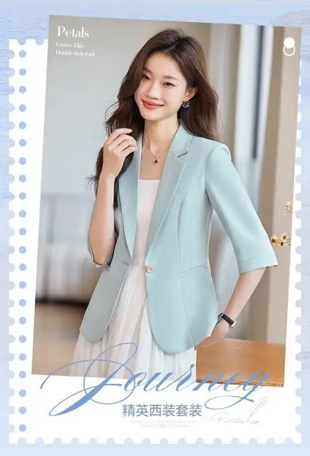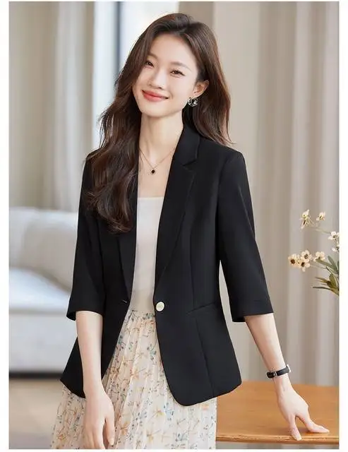 Women's Suit Female Clothing Elegant Woman Oversize Student Fashionable Slim Fit Seven Quarter Rolled Shoulder Pads Tops