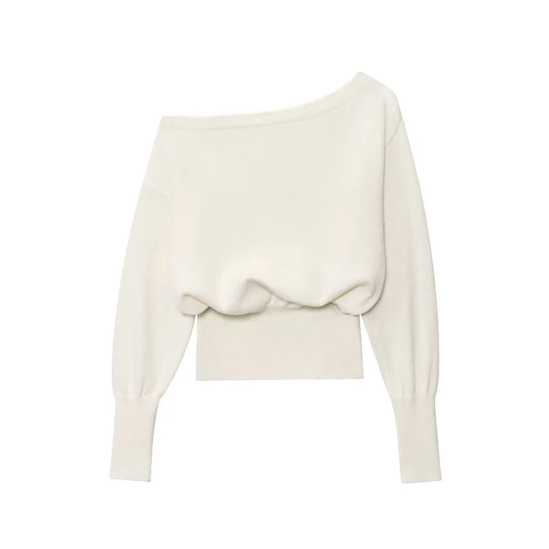 Women's sweater 2025 new American off-the-shoulder loose slim one-shoulder sweater spring and autumn fashion irregular top
