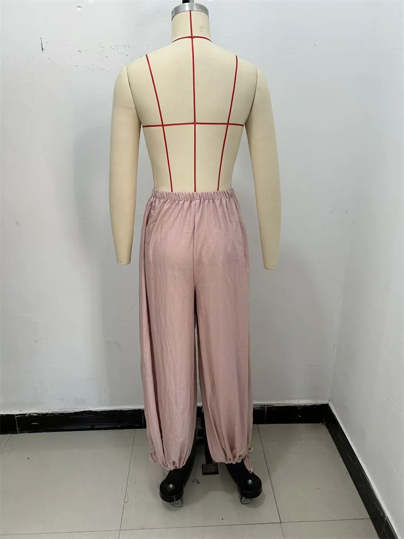 Women's Trousers New for Fall 2025 Pink Loose Pleated Decorative Trousers Casual Fashion Cute and Casual Personality Versatile