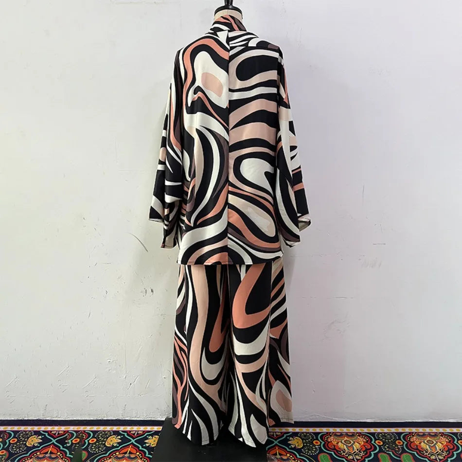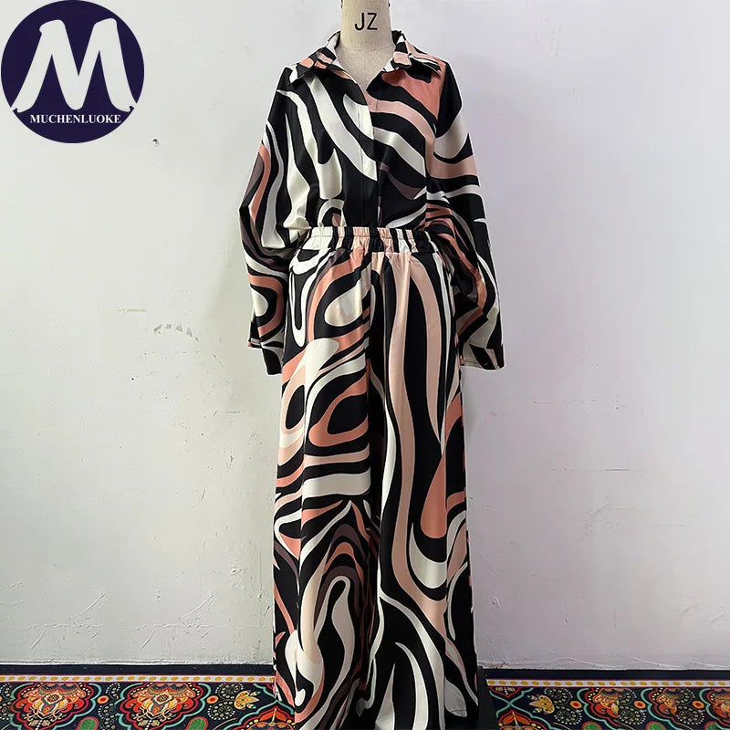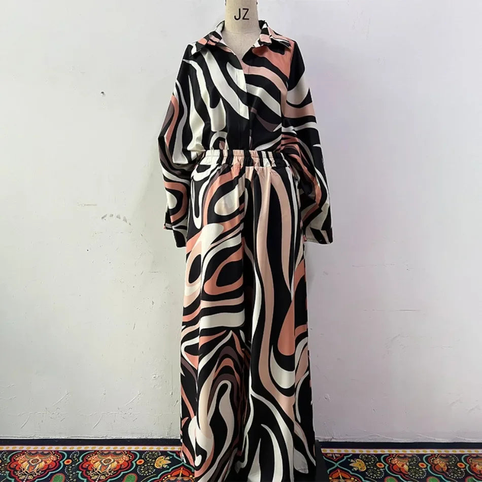 Women's Two Pieces Set Spring Autumn New Elegant Printed Long Sleeves Tops Suits Fashionable Casual Loose Wide Leg Pants Sets