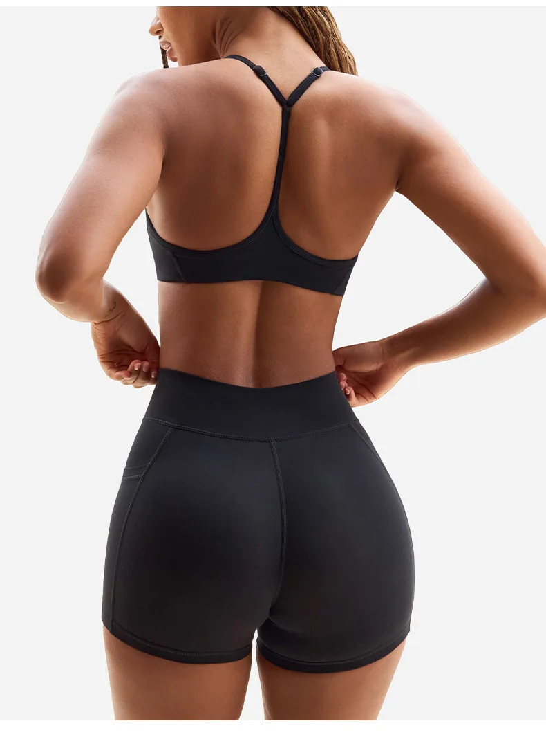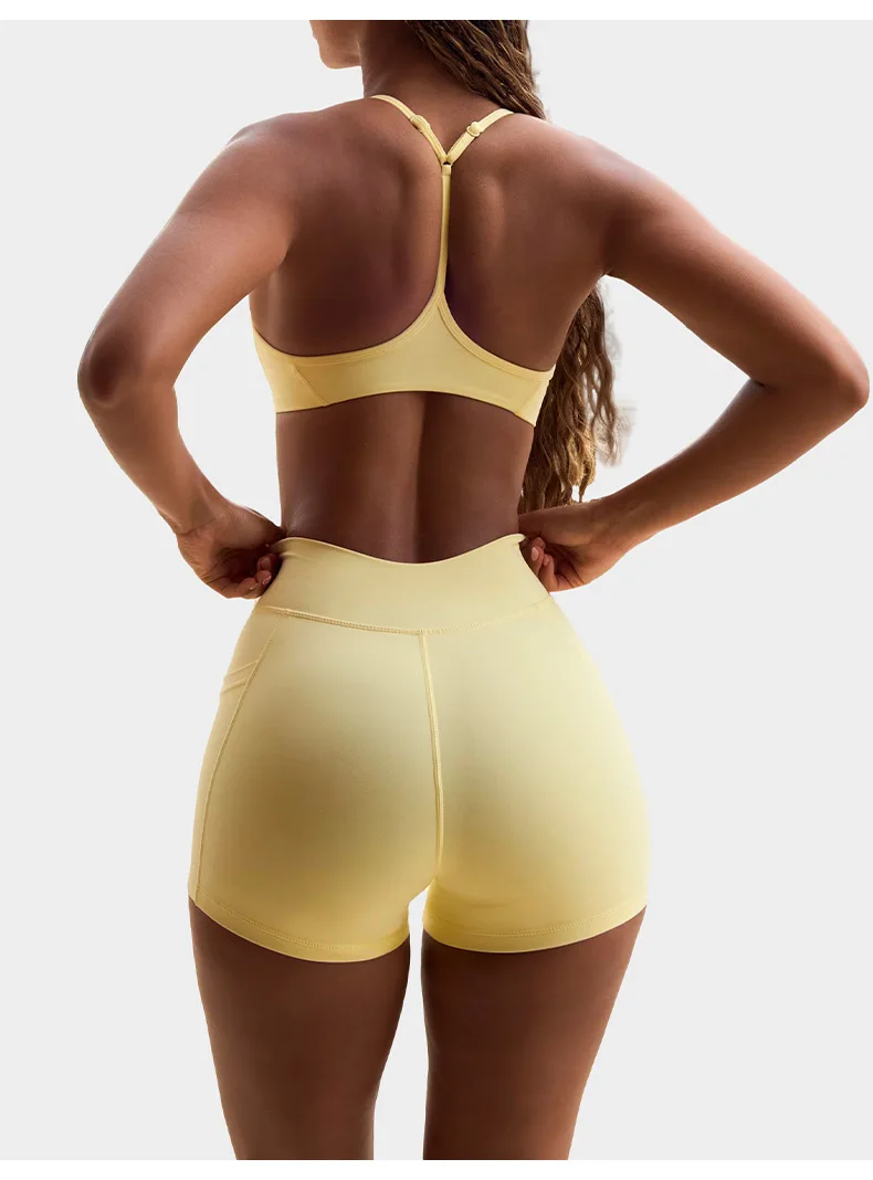 Women's Yoga Suit High Elasticity Naked Breathable Elastic Cross Waist Shorts Hanging Neck Bra Beautiful Back Gym Exercise Set